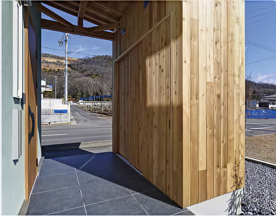 玄関の外部収納 無垢建具の不具合
