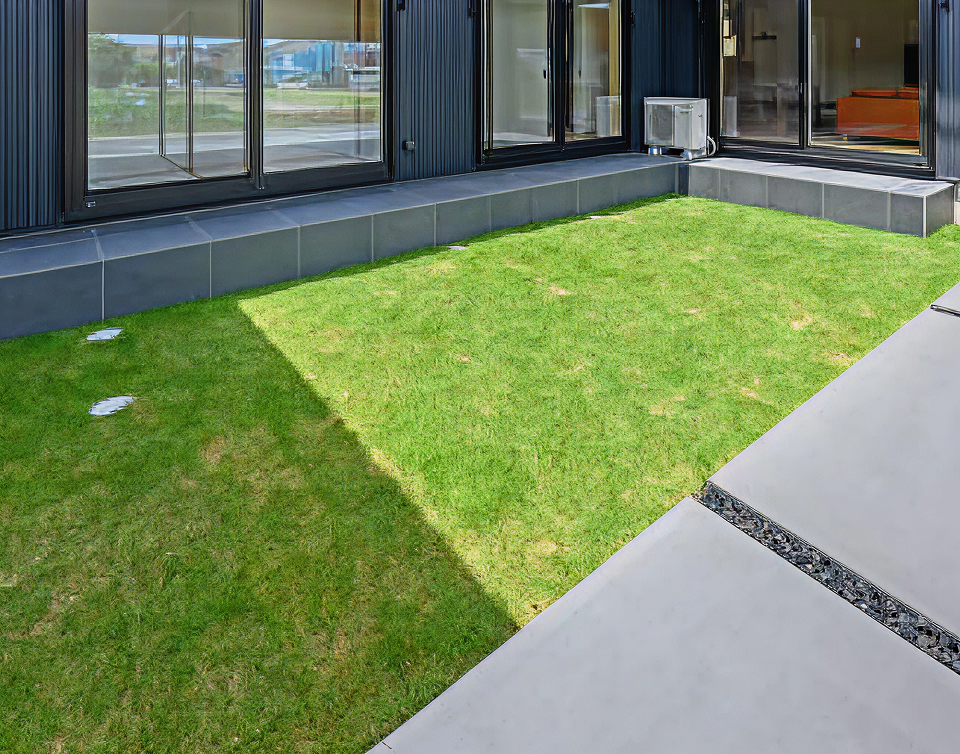 南側は平屋建てで日照条件も芝の生育に問題ないと思ってましたが、1年後くらいから芝の成長が悪く枯れたり、雑草が生えはじめ綺麗なはずの中庭が無残な姿になってました。