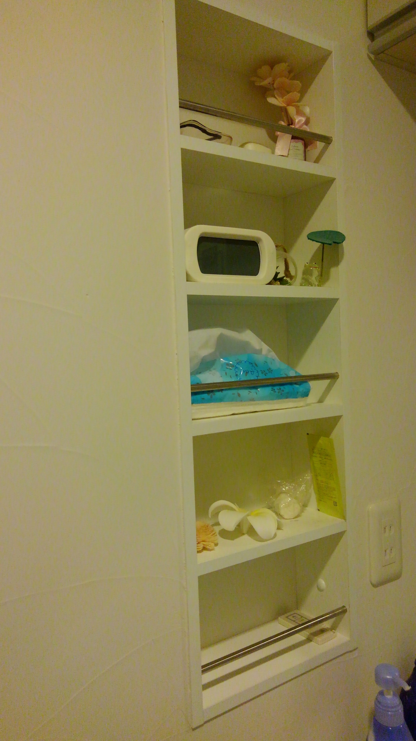 洗面所の壁に、はめ込んでいるような形で収納をつけてもらっています。