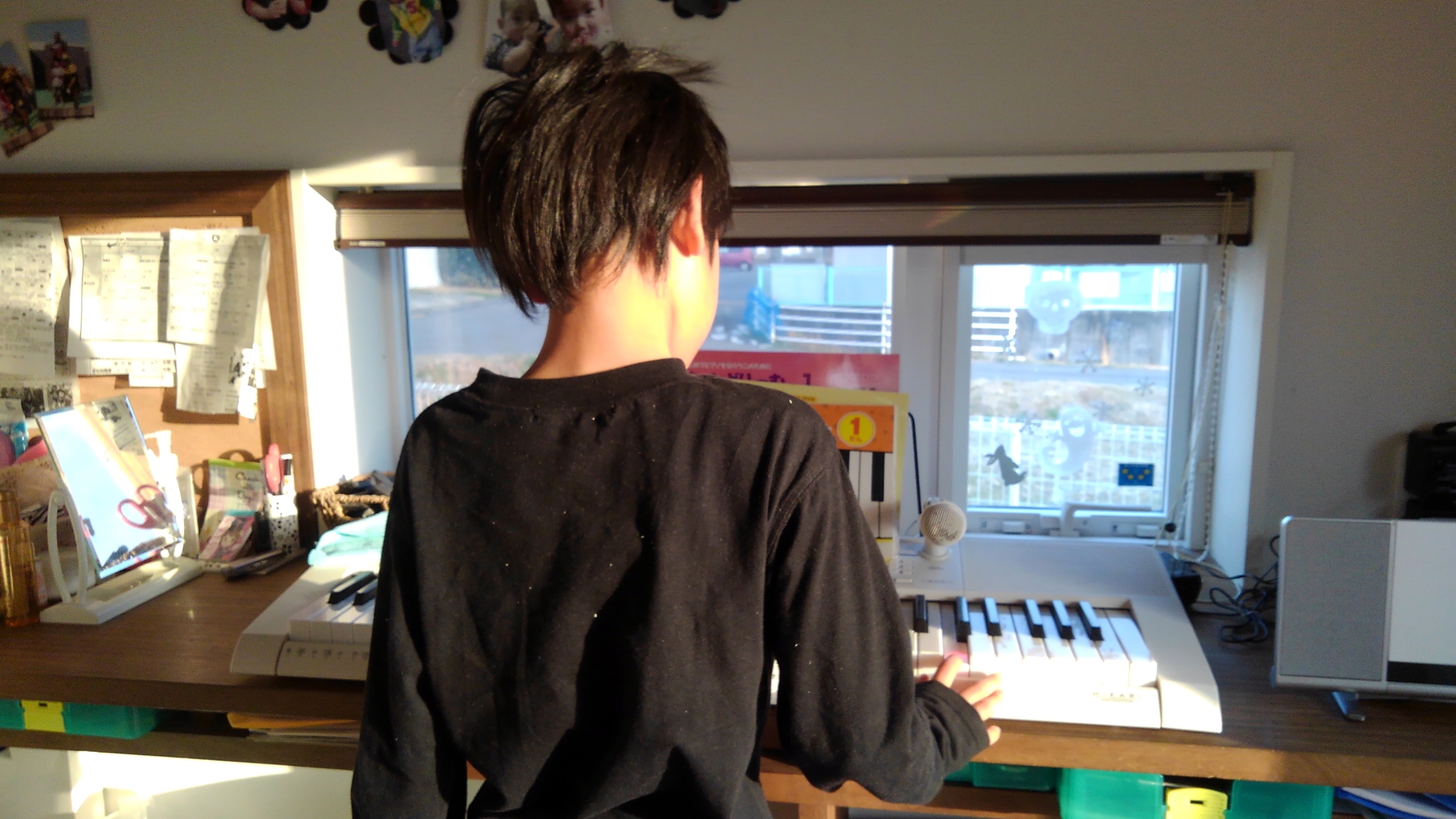スタディコーナーですが、うちはまだここでは勉強していなく、リビングにある小さな机で宿題などをしていて、今は電子ピアノなどをおいてあります。