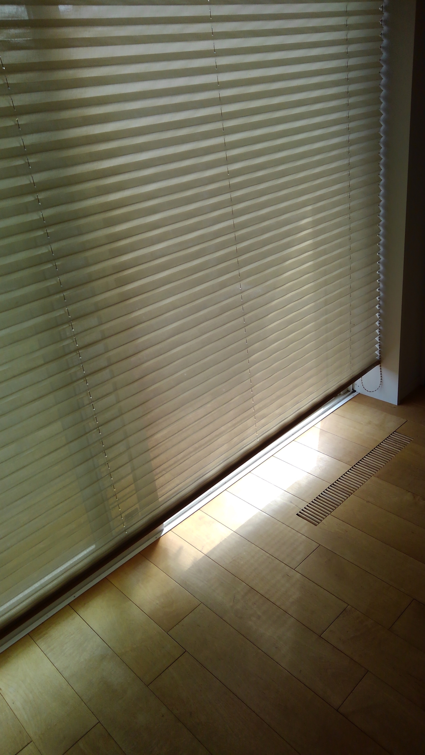 湿度が低いせいもありますが、温度は27℃ありますが、窓のブラインドを写真のように閉めて、そうすると、日差しによる温度上昇がさほどなく、ブラインドの閉めていない部分からとても涼しい風が吹いてきています。