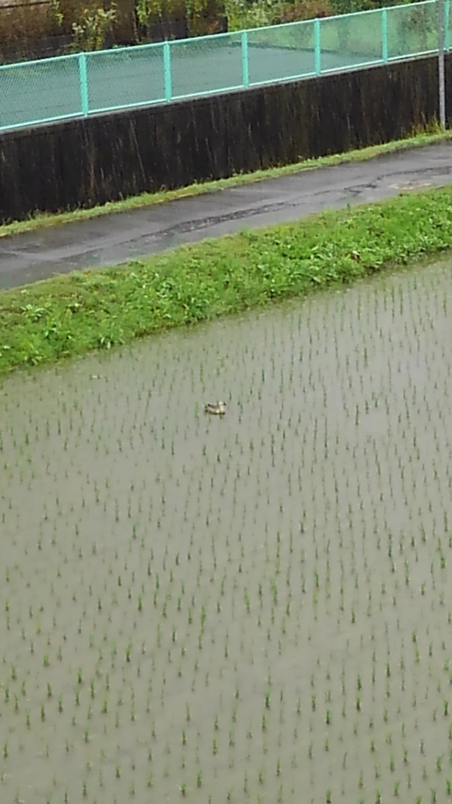 前回のブログで隣の田んぼのことを書きましたが、今日はその田んぼにカルガモが来ていて、可愛くて慌てて写真を撮りました(^^;