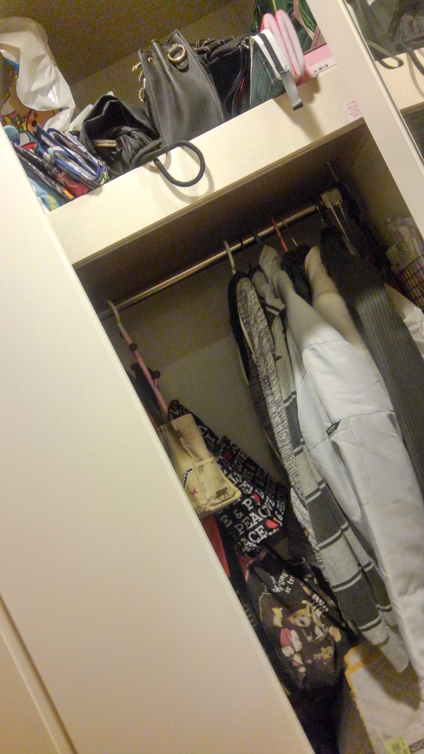 帰宅した時にはコートを脱いで、このクローゼットに収納して、カバンなどを置きます。