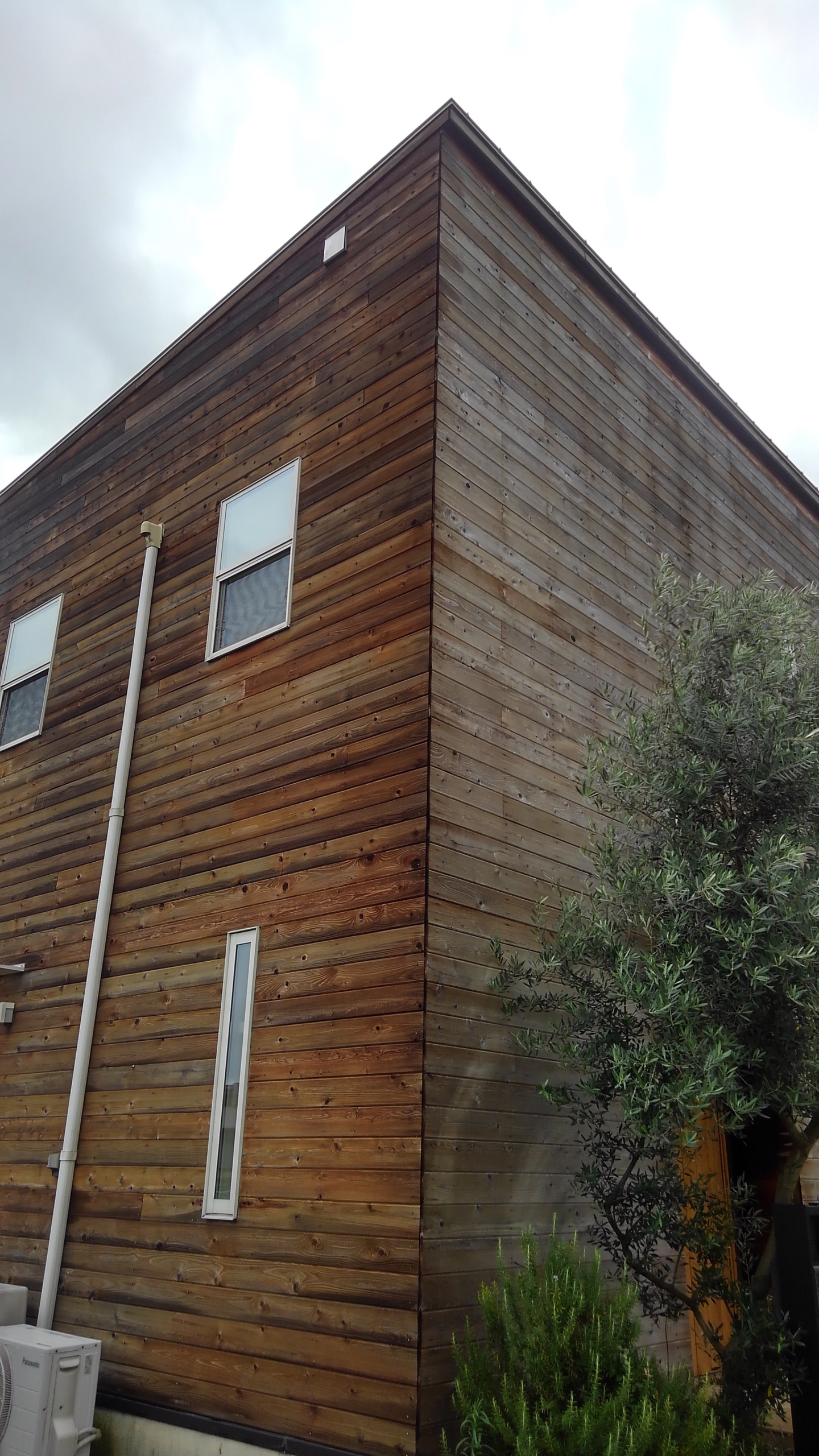 濃い茶色という感じでとてもおしゃれです。晴れて乾いてくると、また薄い茶色に戻ります。
