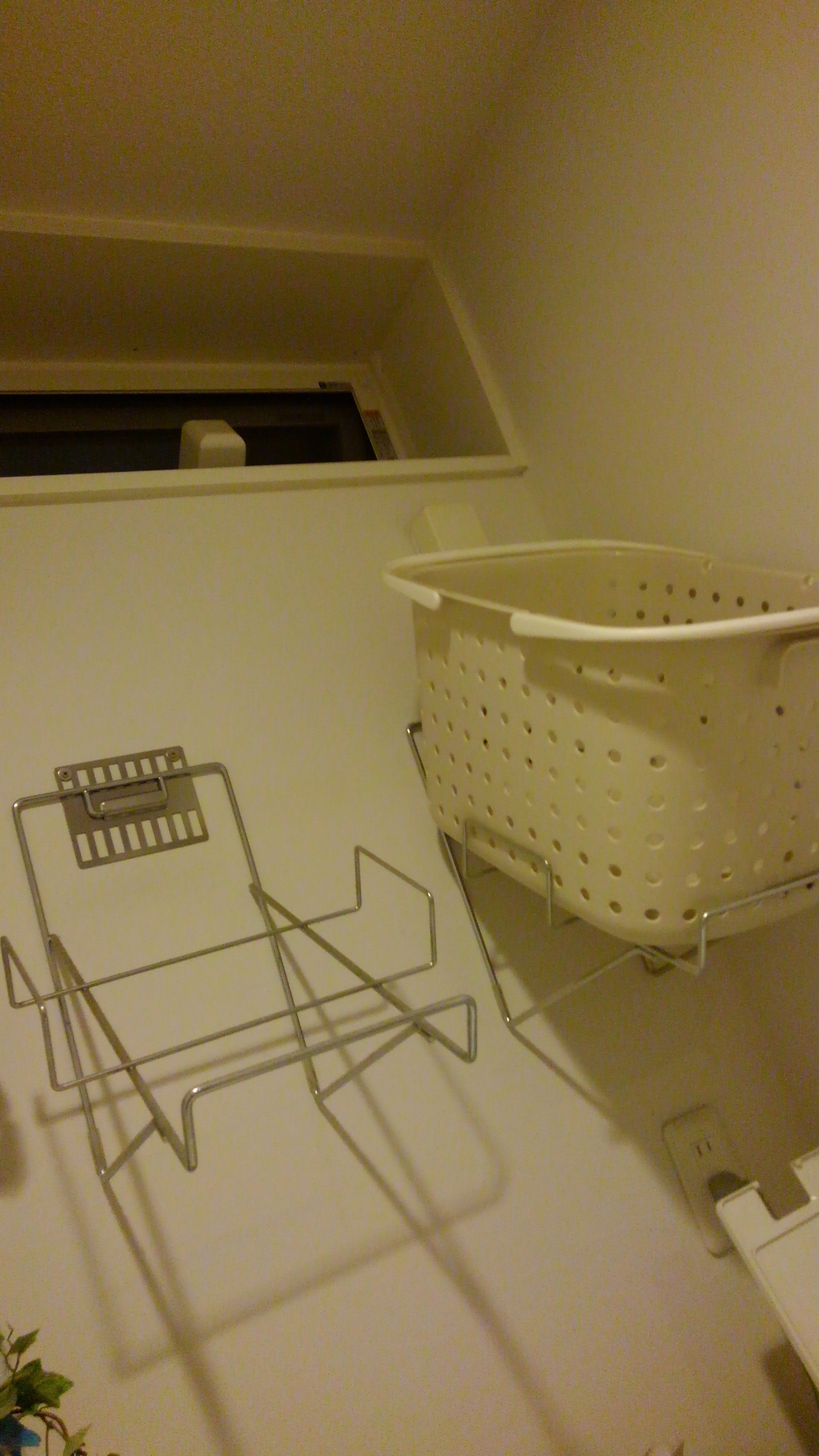 洗面所の洗濯機の上に洗濯物かごをつけてもらっています。