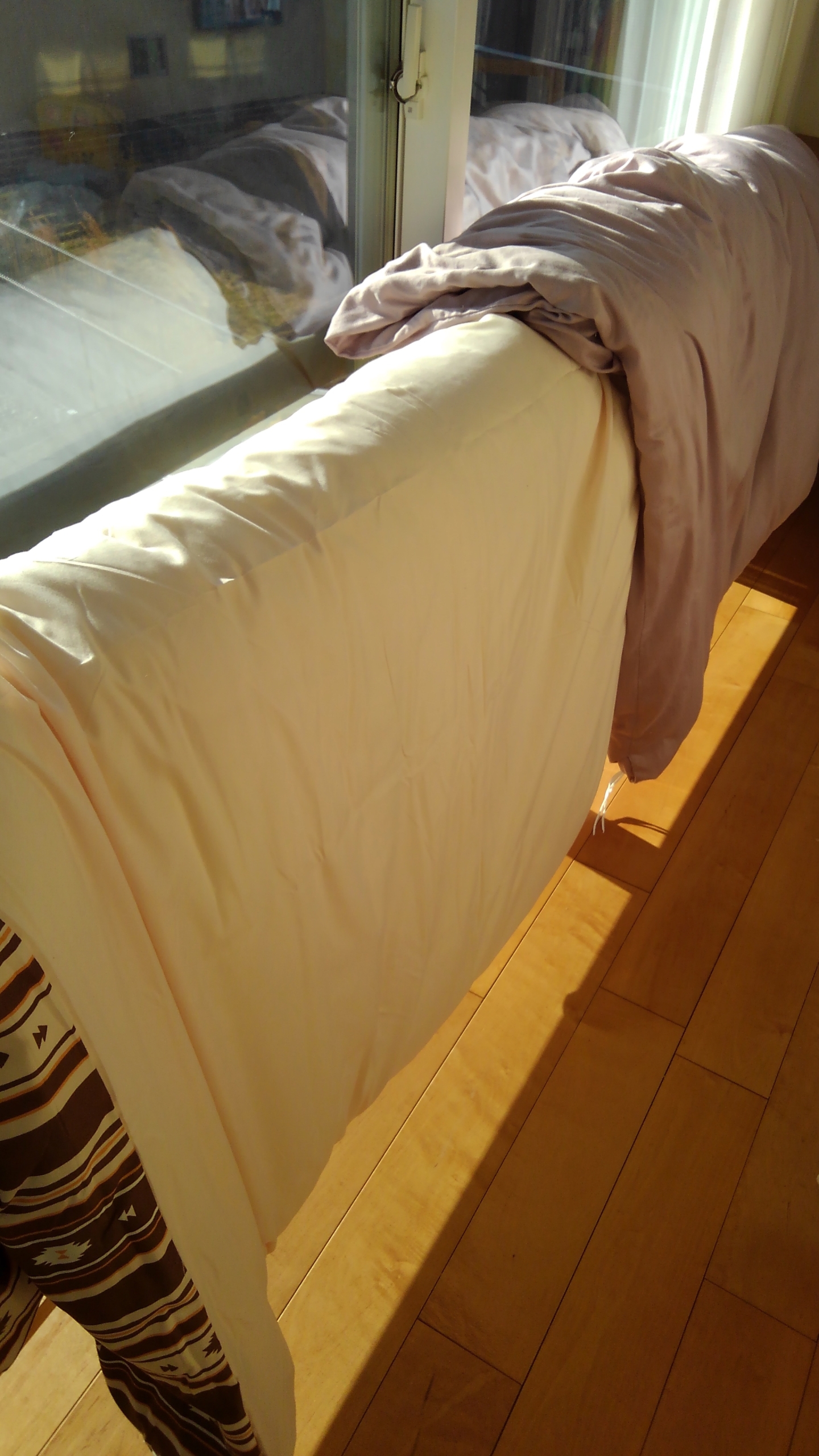 ぐちゃぐちゃ適当ですごく恥ずかしいですが、朝時間がないとき、こんな感じで布団を干してます(*ノ▽ノ)