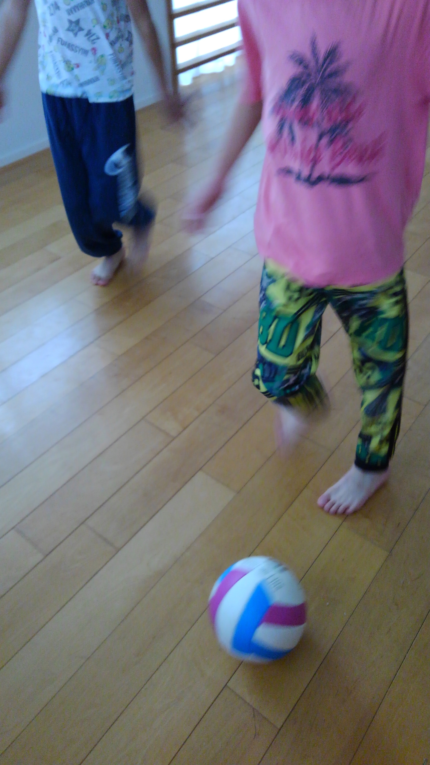 2階の子供部屋で二人でサッカーしました。私は・・・監督です(笑)