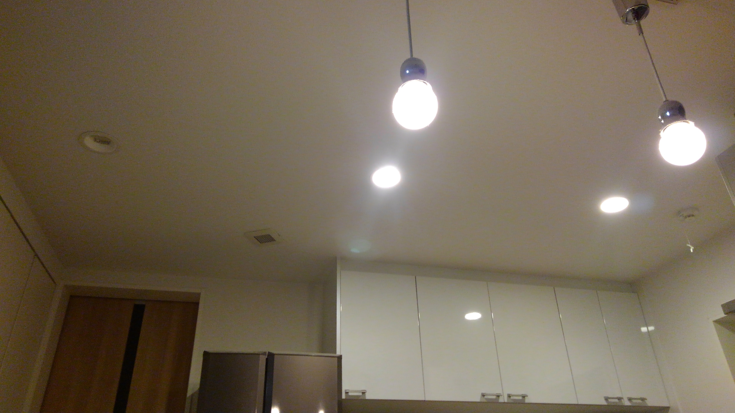 白いキッチンにライトが素敵!と我が家ながらに思ってしまいました。