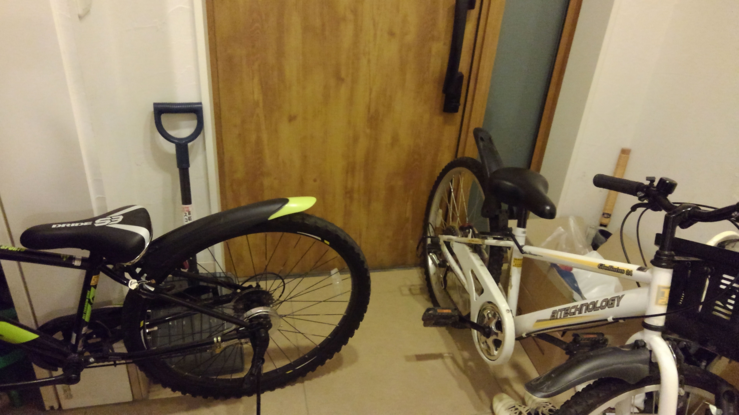 しばらくの間、ちょっと狭くて不便ですが、2台の自転車は玄関に置いておきます!