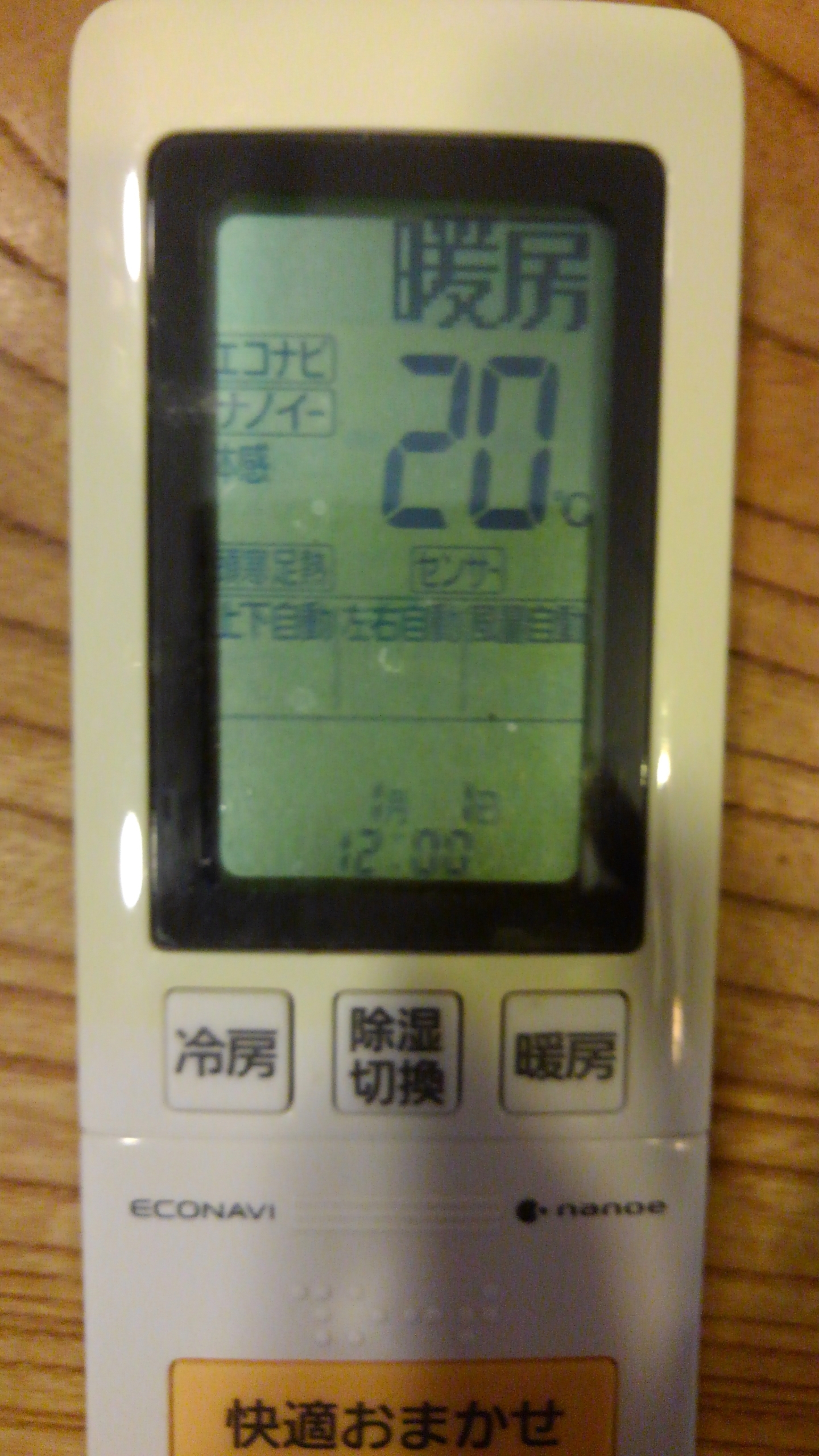 エアコンは今日からまたつけはじめて、20℃に設定してあります。