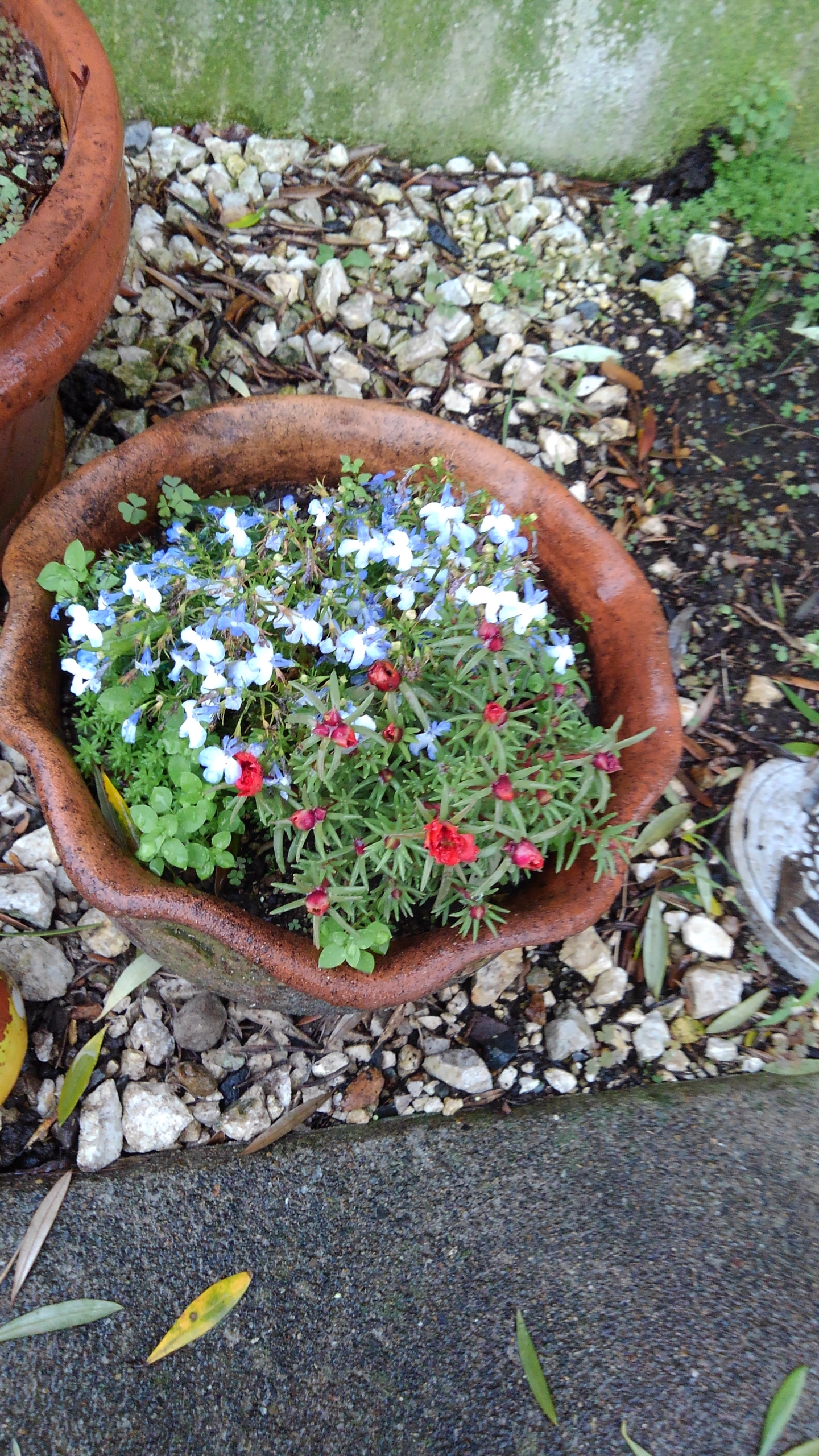 以前に植えたお花、今日のどしゃ降りの雨の中でも綺麗に咲いていてくれています。