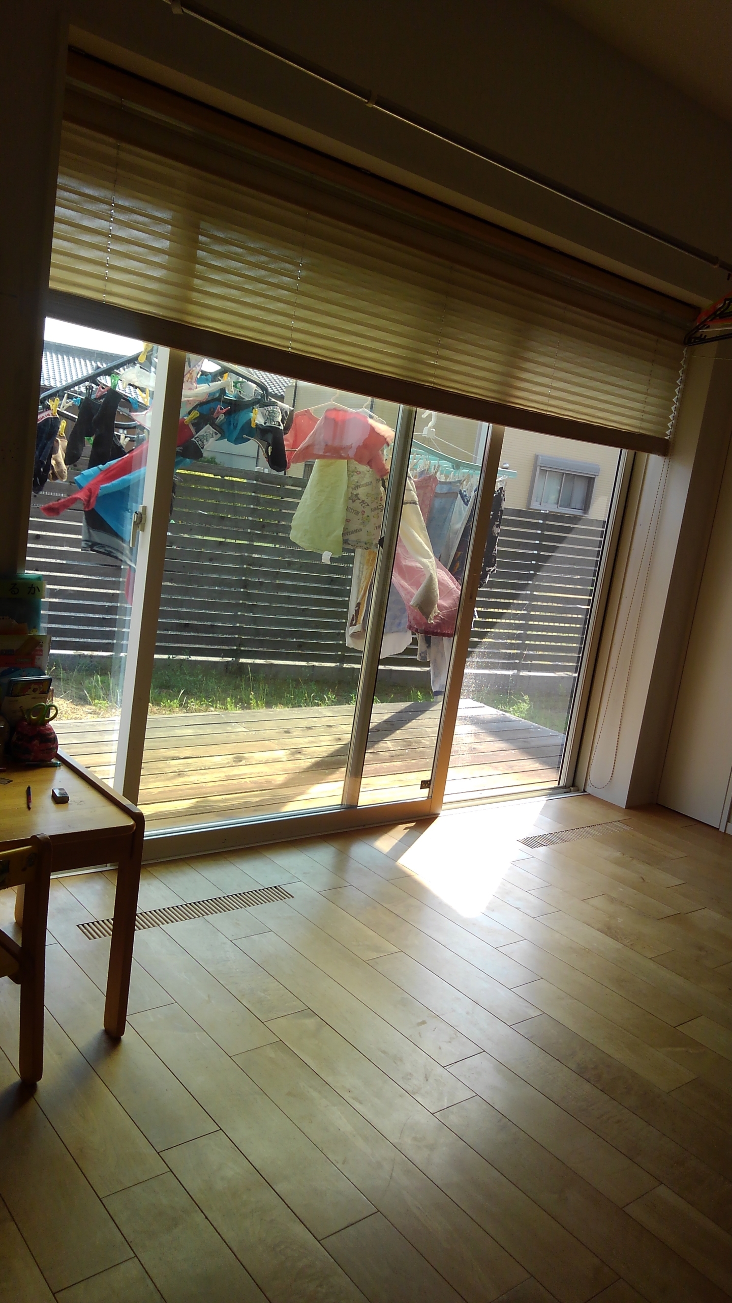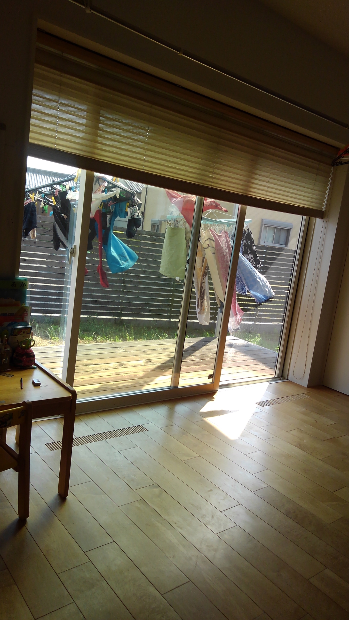 窓を開けておくと、とても気持ちのよい風が入ってくるのですが、写真でそれをなかなか伝えることができないので、洗濯物が風で揺れていたので、部屋の中に風が入ってきている様子が少しはわかるのかなぁと思い写真を撮ってみました。