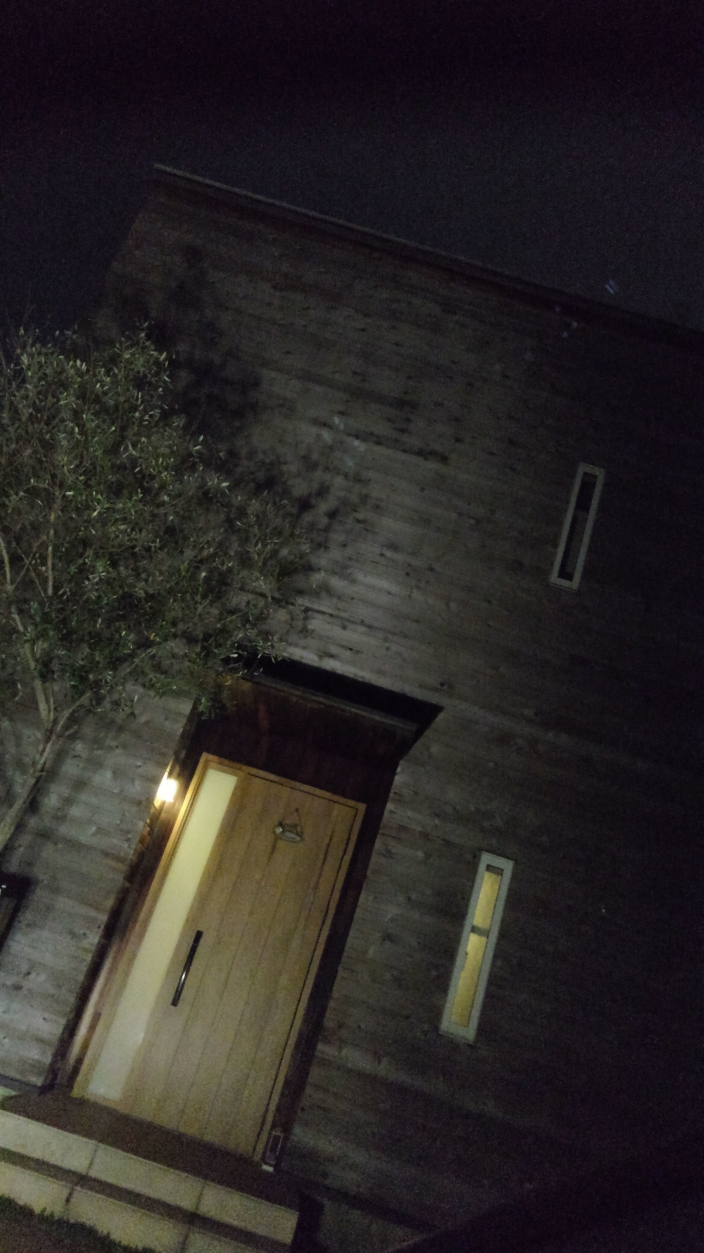 エムズさんに建てていただいた木の家。夜に子供を習い事に連れていった帰りにふと見たら、なんか綺麗だったので写真に撮ってみました。