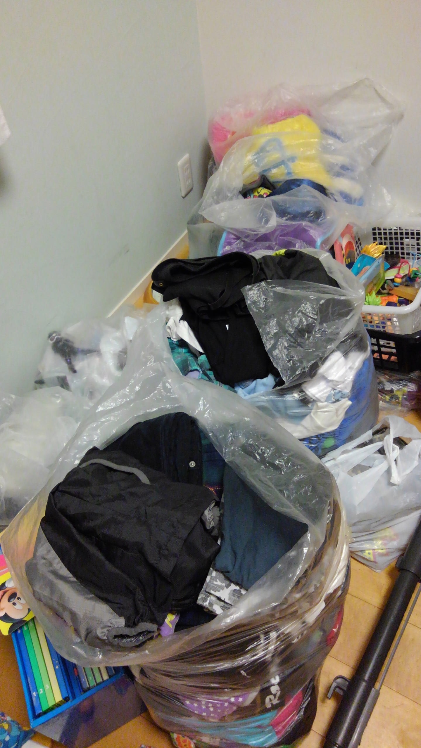 大量のゴミのような中身はいらない服、子供たちが幼稚園時代に使っていたものなどです。
