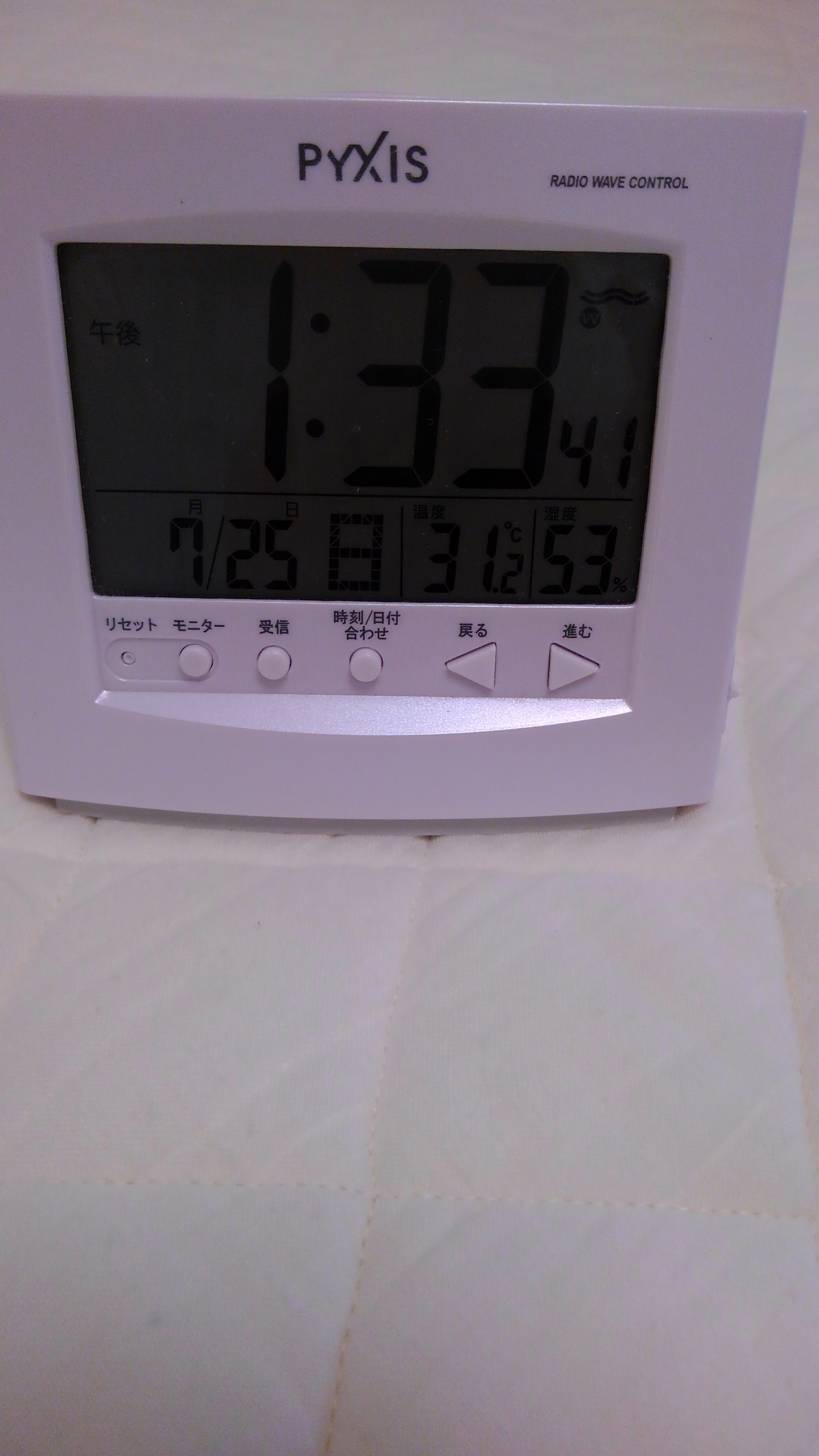 エアコンを使わず、1階のような遮熱タイプのブラインドなどもなく、窓にレース状のカーテンがあるのみですが、温度は31℃ありますが、湿度が53%です。