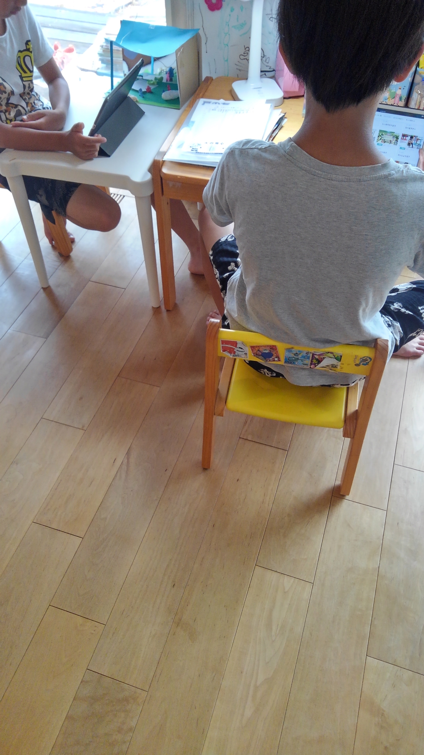 いまだにスタディコーナーを使うことなく、こんなに小さな椅子に座っています(笑)