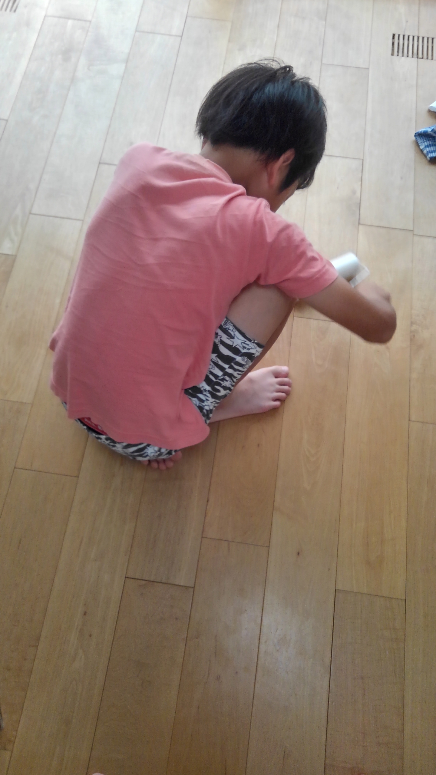 犬ちゃんが、気持ちよくすごせるようにとコロコロをたくさんかけて掃除を頑張ってくれている次男くんです(笑)