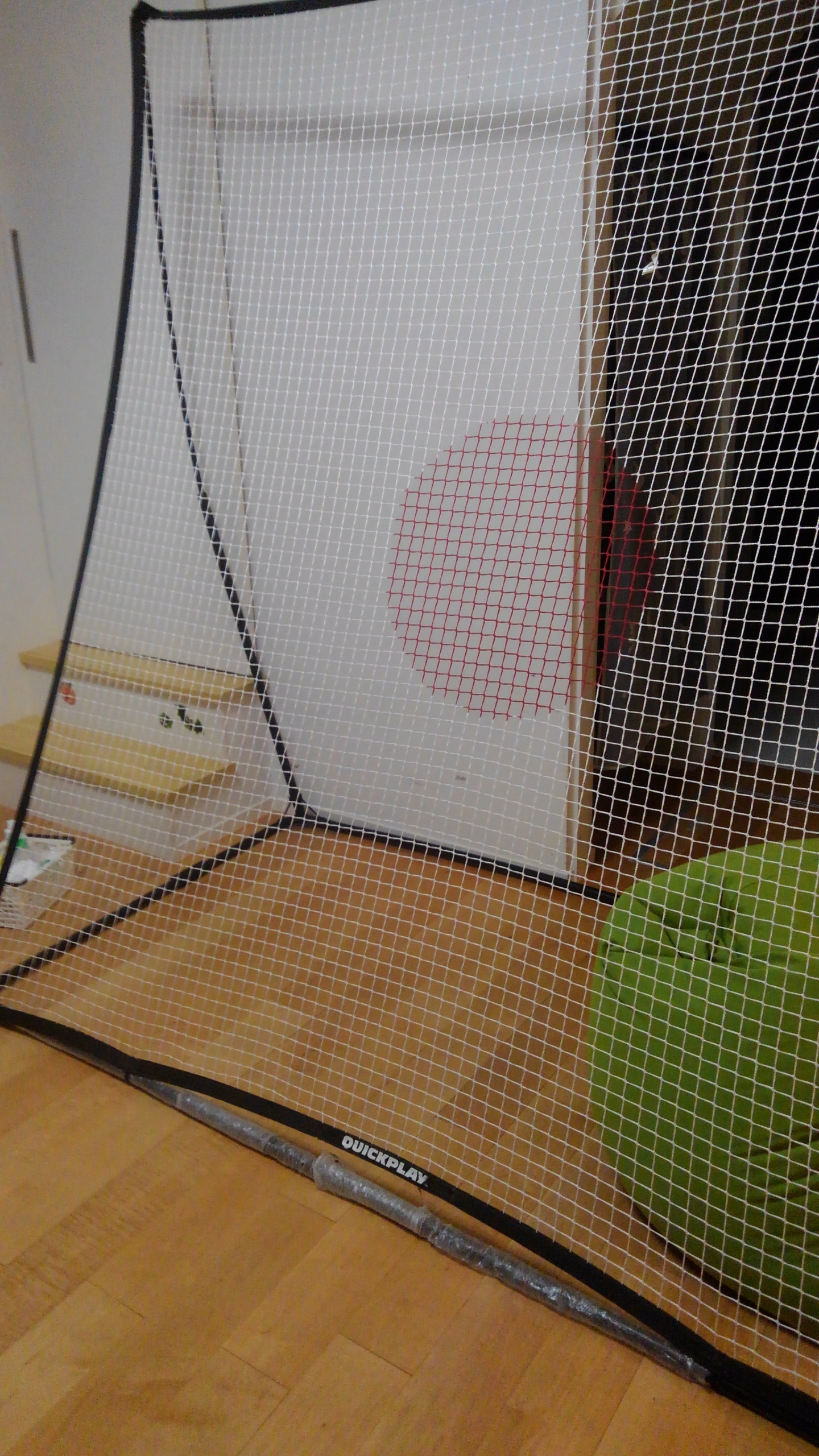これはリバウンドネットというもので、ボールが跳ね帰ってくるので、一人でもサッカーのボールが蹴れるもので、リビングにおいて二人でやったりしています。