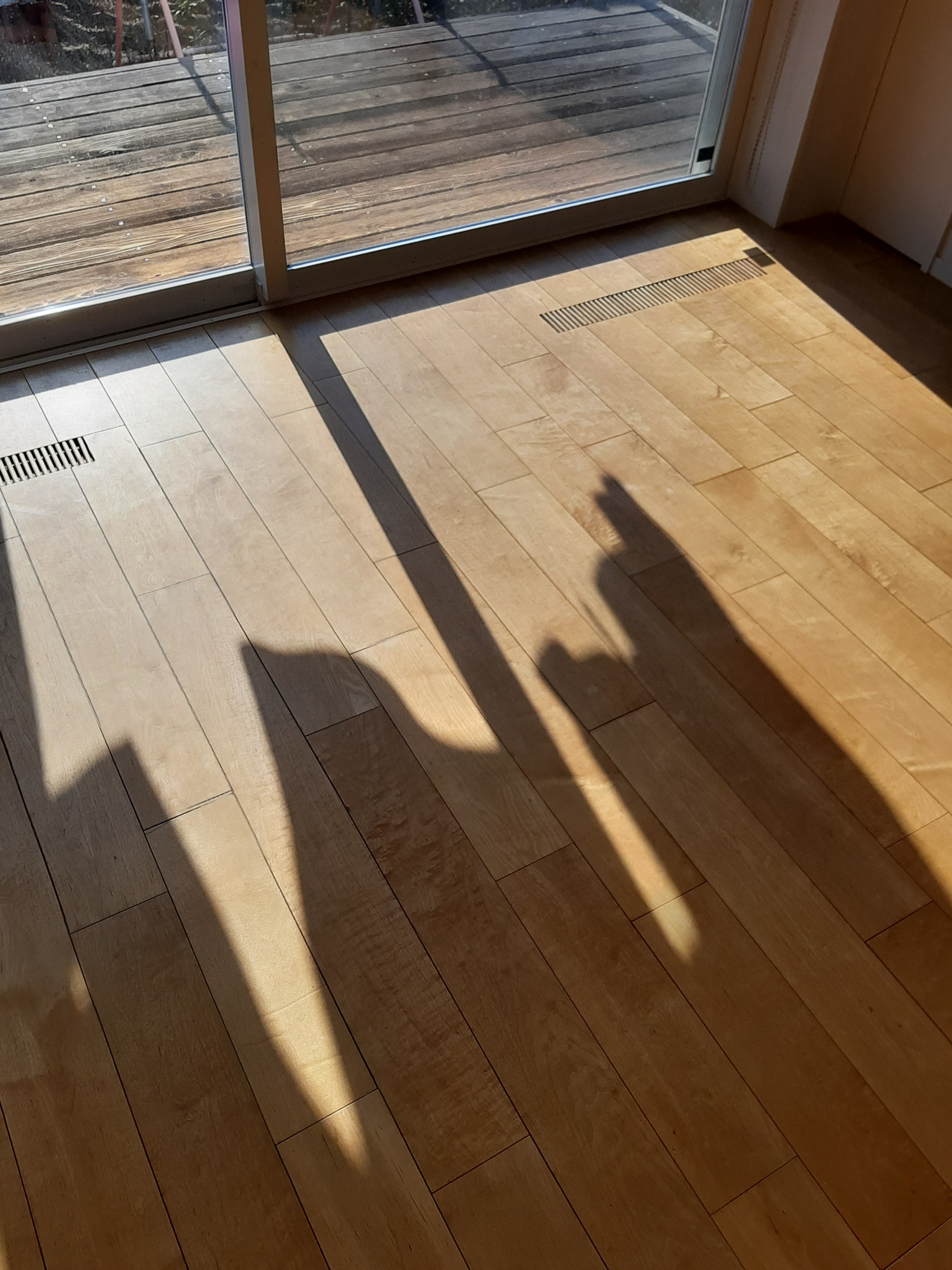 昼間にたくさん太陽の光を部屋の奥まで取り込んでポカポカで昼間はエアコンがいらないくらい暖かです。