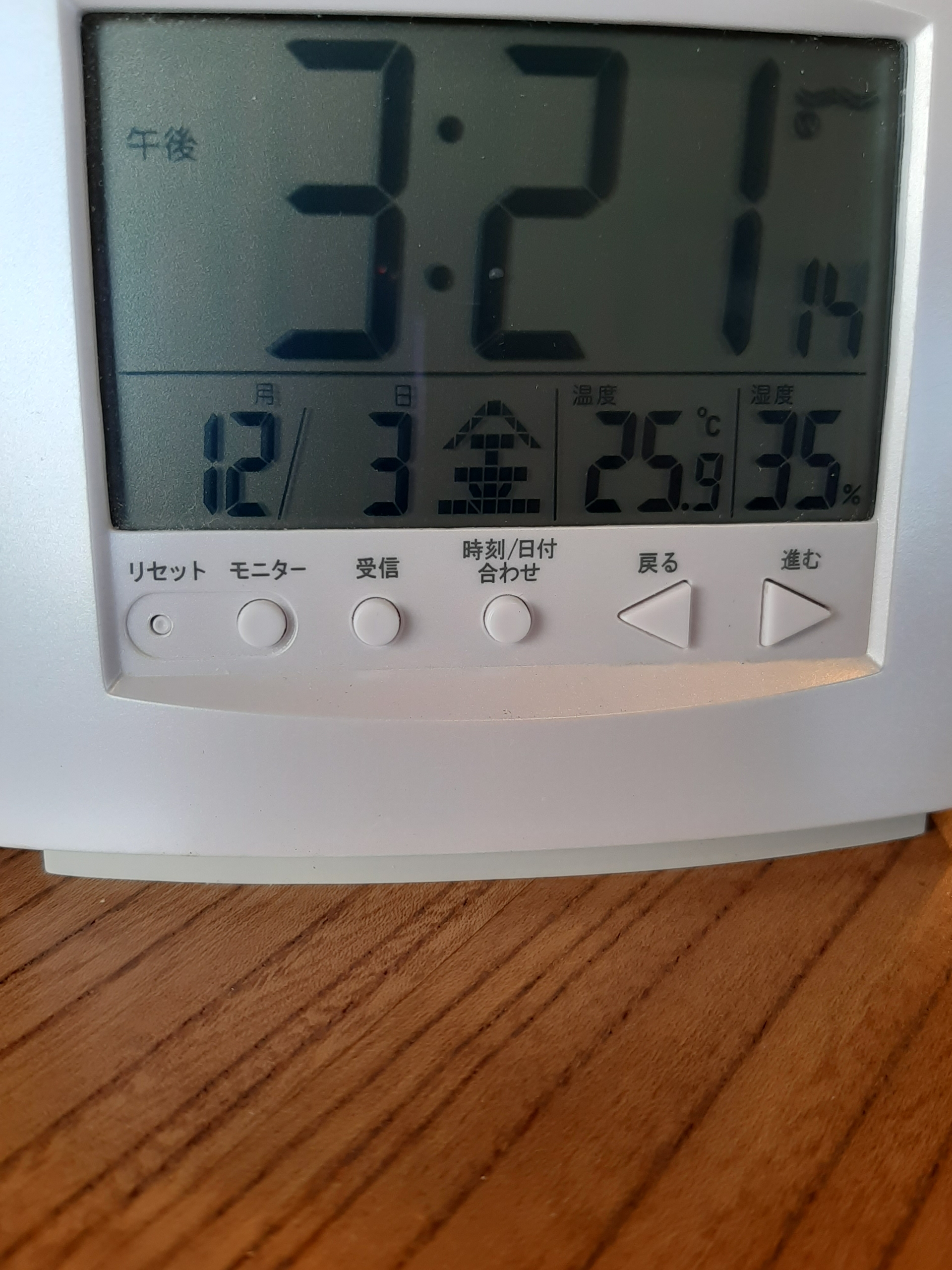 曇ってきても昼間の間に取り込んだ日差しの暖かさのおかげで約26℃あって部屋の中はまだまだポカポカです。