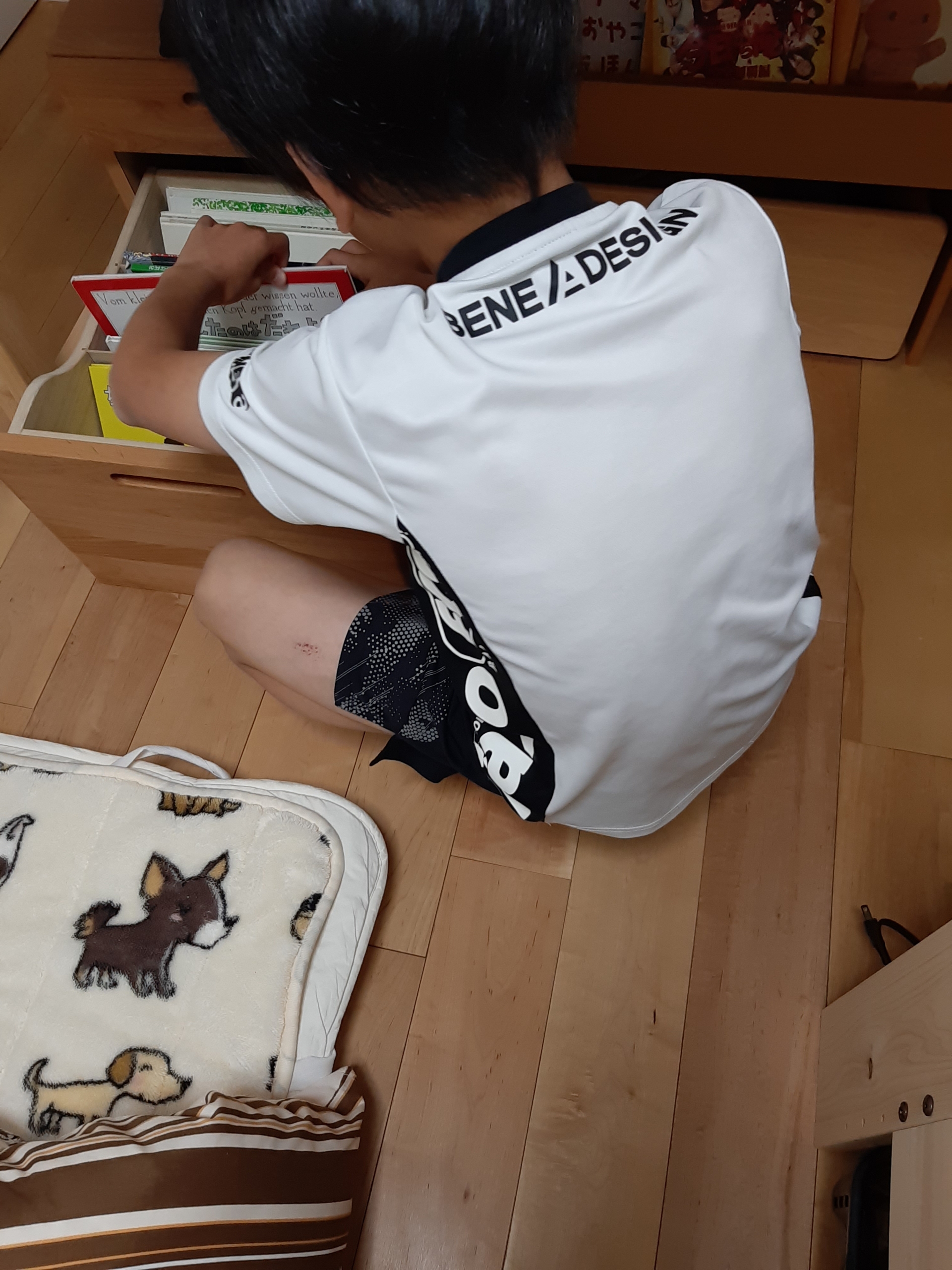エアコンもつけていないので、さすがに長袖を着てほしいのですが、子供たちは相変わらず半袖半ズボン((ー。ー#)