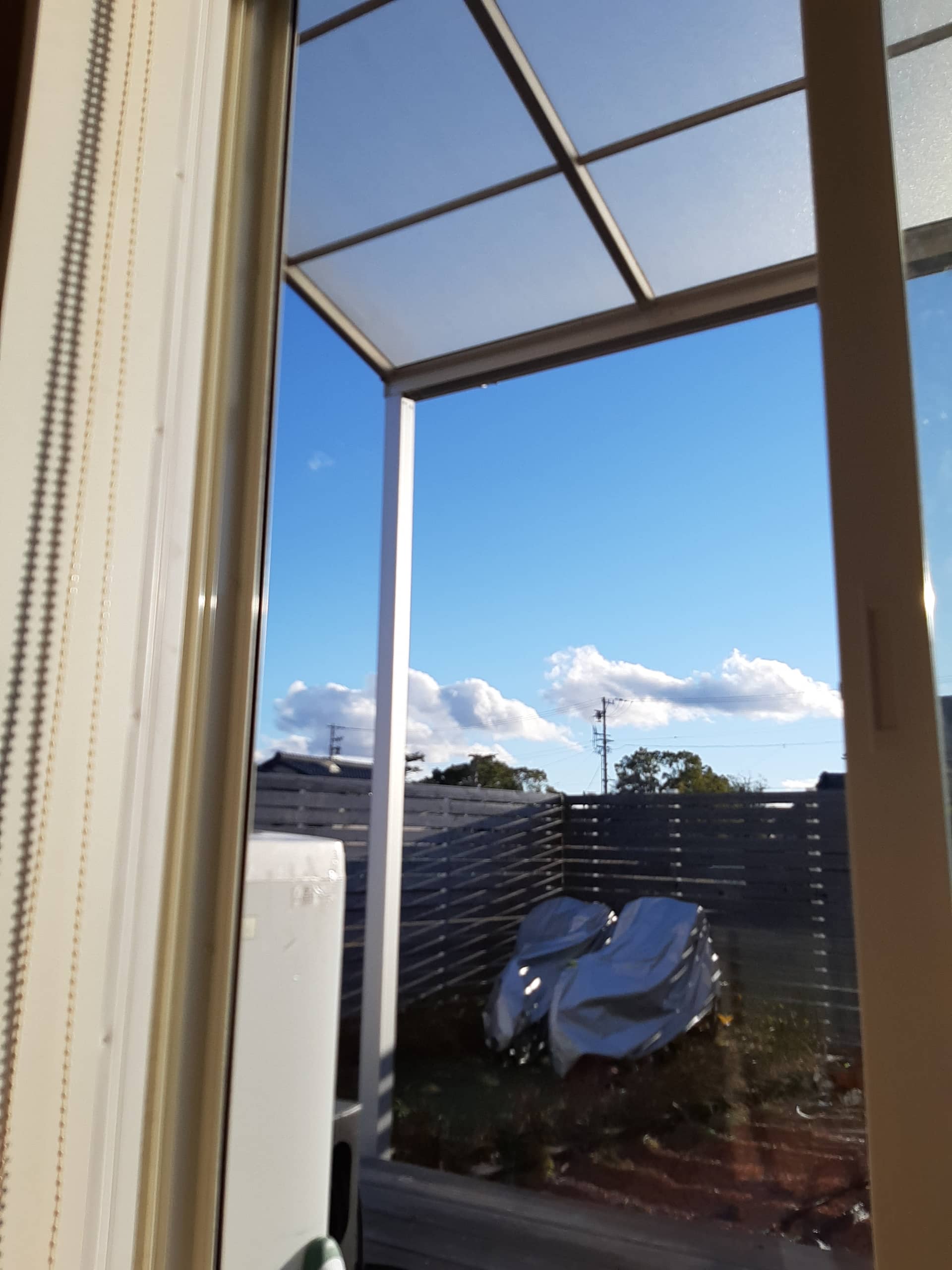 窓から見える空がとてもきれいで暖かい部屋で1人のんびりこんな空を見れて幸せを感じました(*^-^)