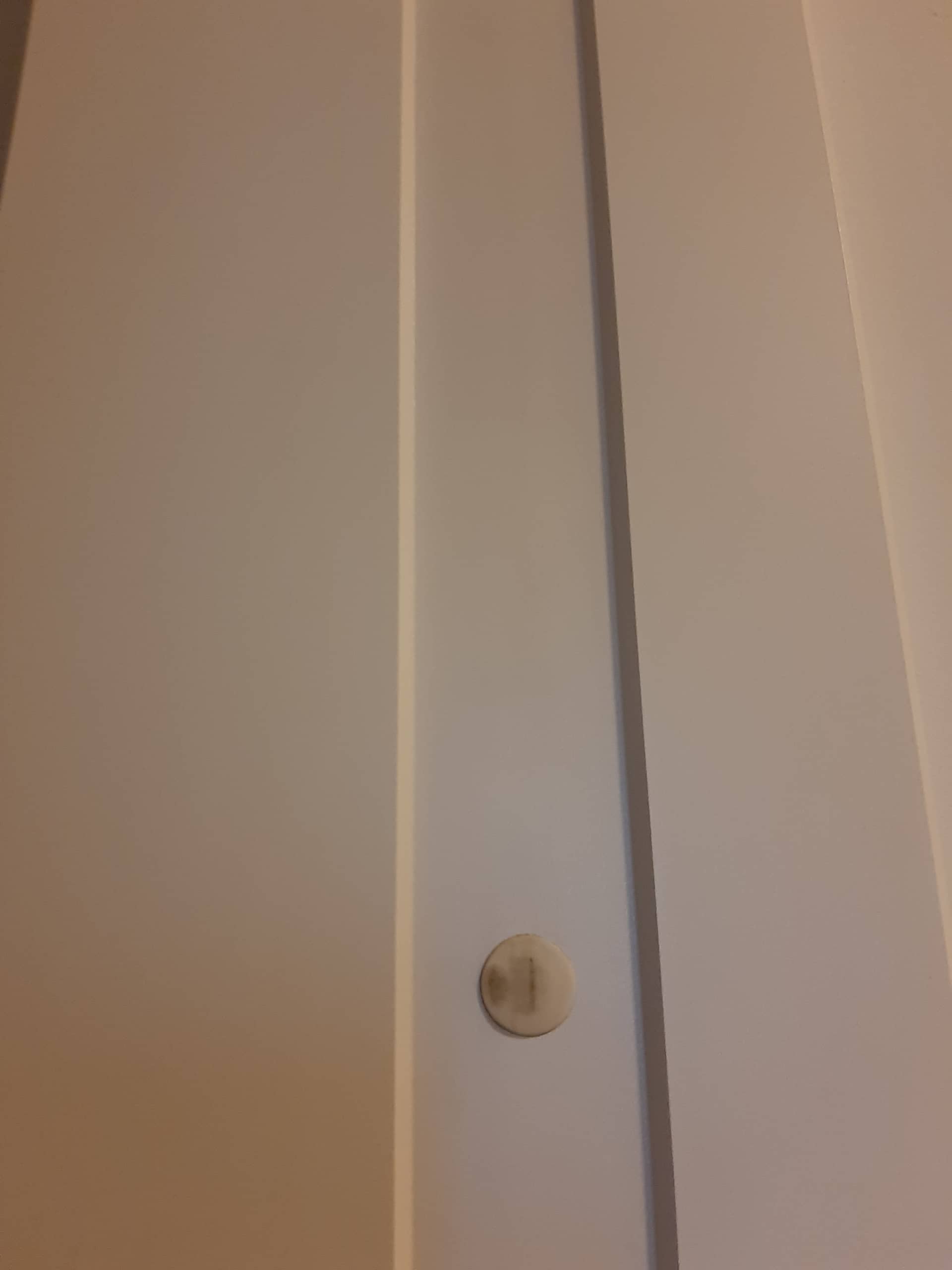 トイレのドアの閉まる所の壁、、、というのでしょうか。閉まる所の壁部分をふと見ると黒ずんでいる汚れが(゚Д゚)