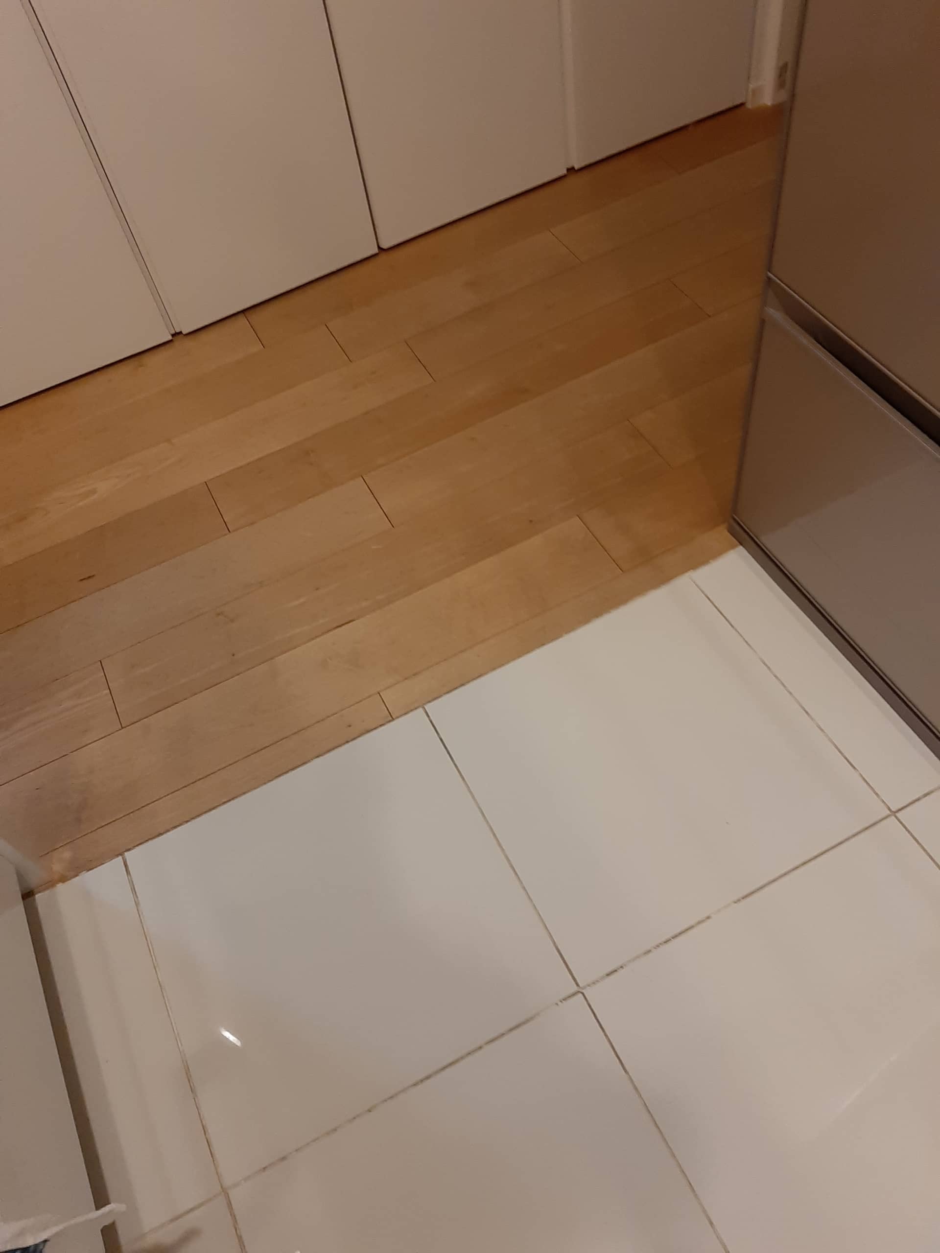 約1m35cmくらいあって、冷蔵庫をおいてもこんな感じで狭くなりません。