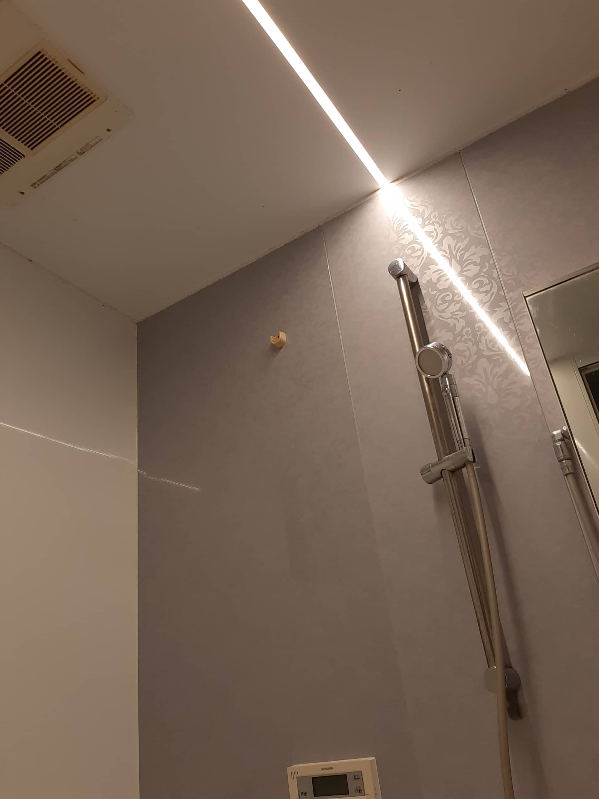 我が家のパナソニックさんのお風呂の電気はこんな風に一直線の細長い電気が一本天井についています。