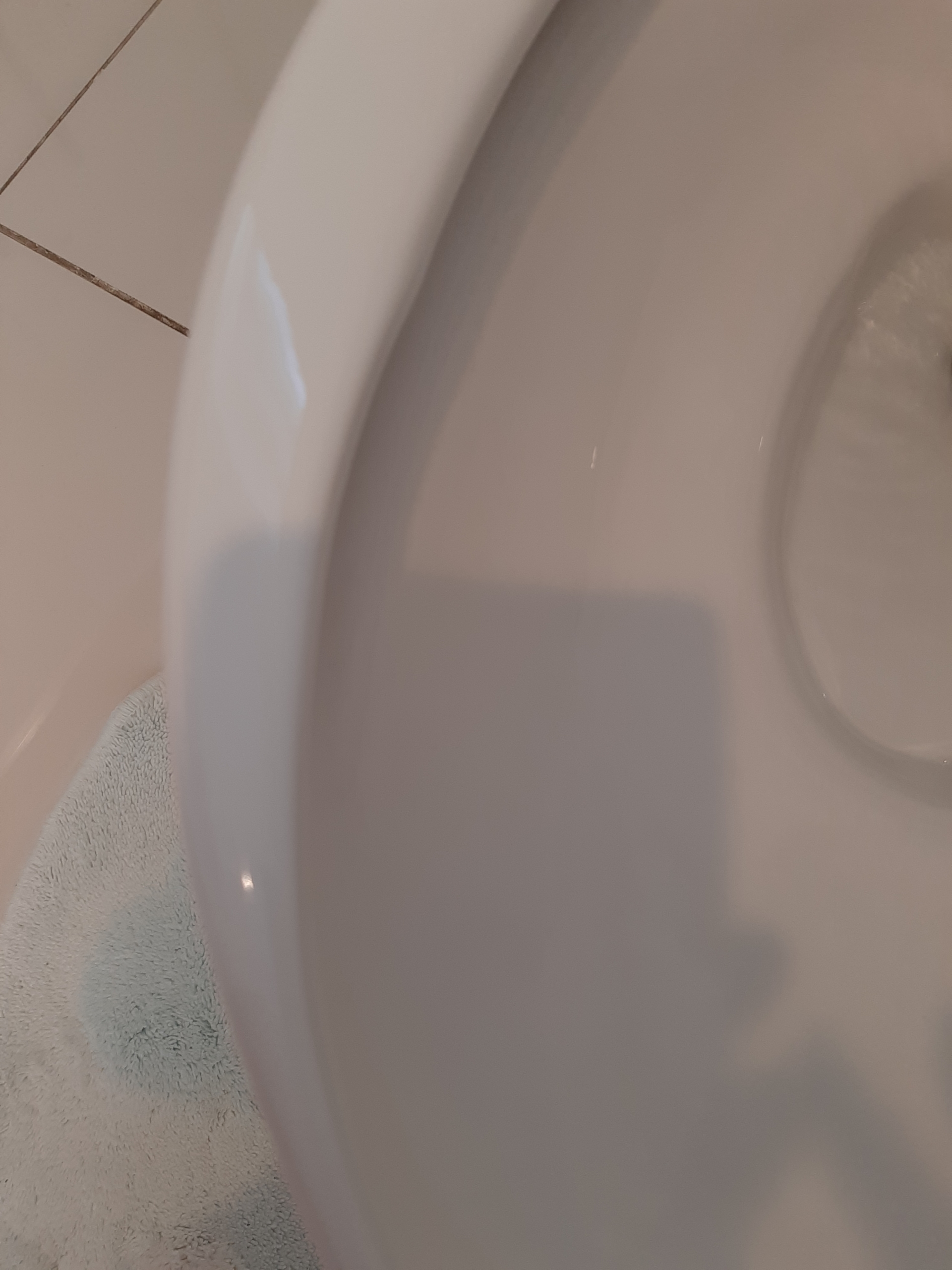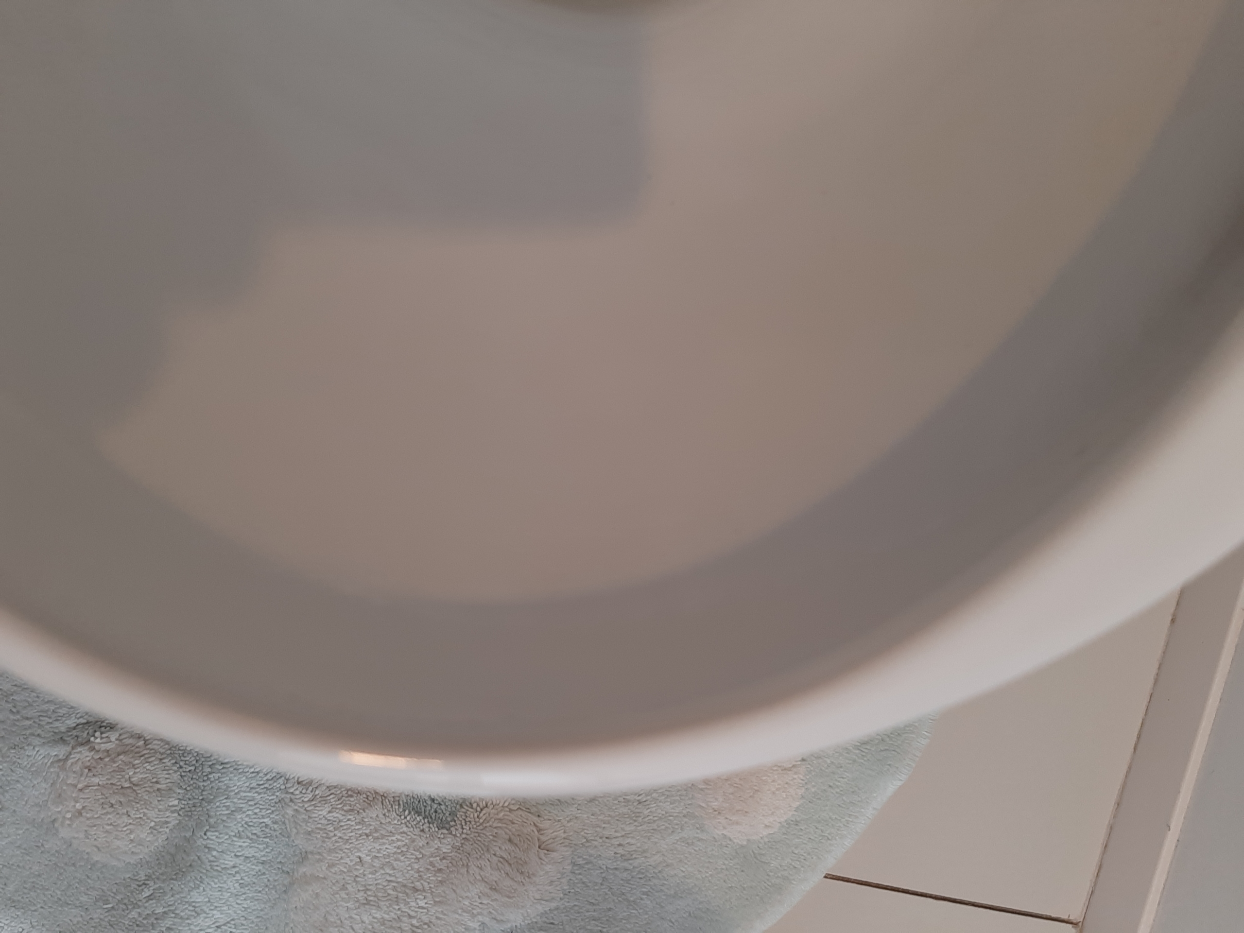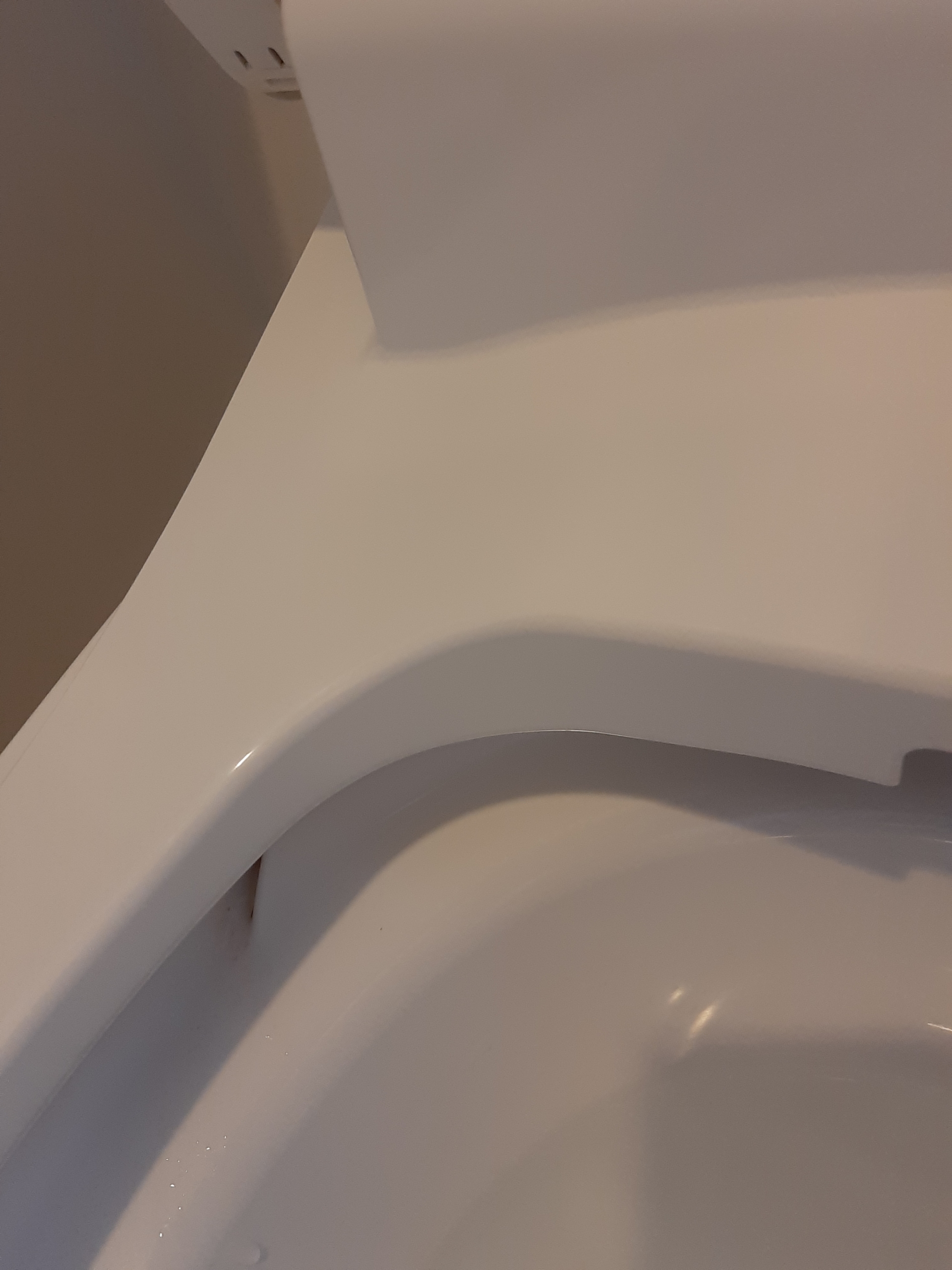 写真の左側の凹み部分が特にざっと洗っただけではなかなか汚れが落ちづらいので、泡をかけておいておくタイプのトイレ洗剤なら落ちますが、通常のトイレ掃除だと細かいブラシなどを使ったりしないとなかなか汚れが落ちないので、写真のように水垢が残りやすいです。