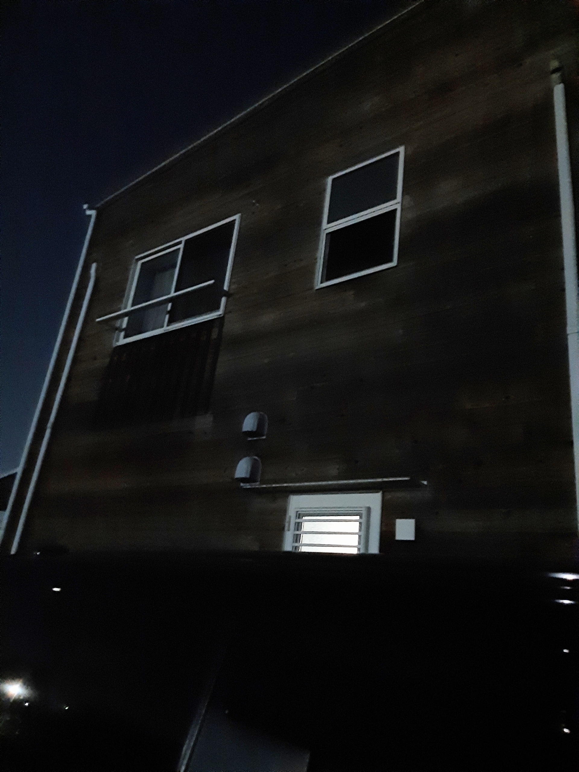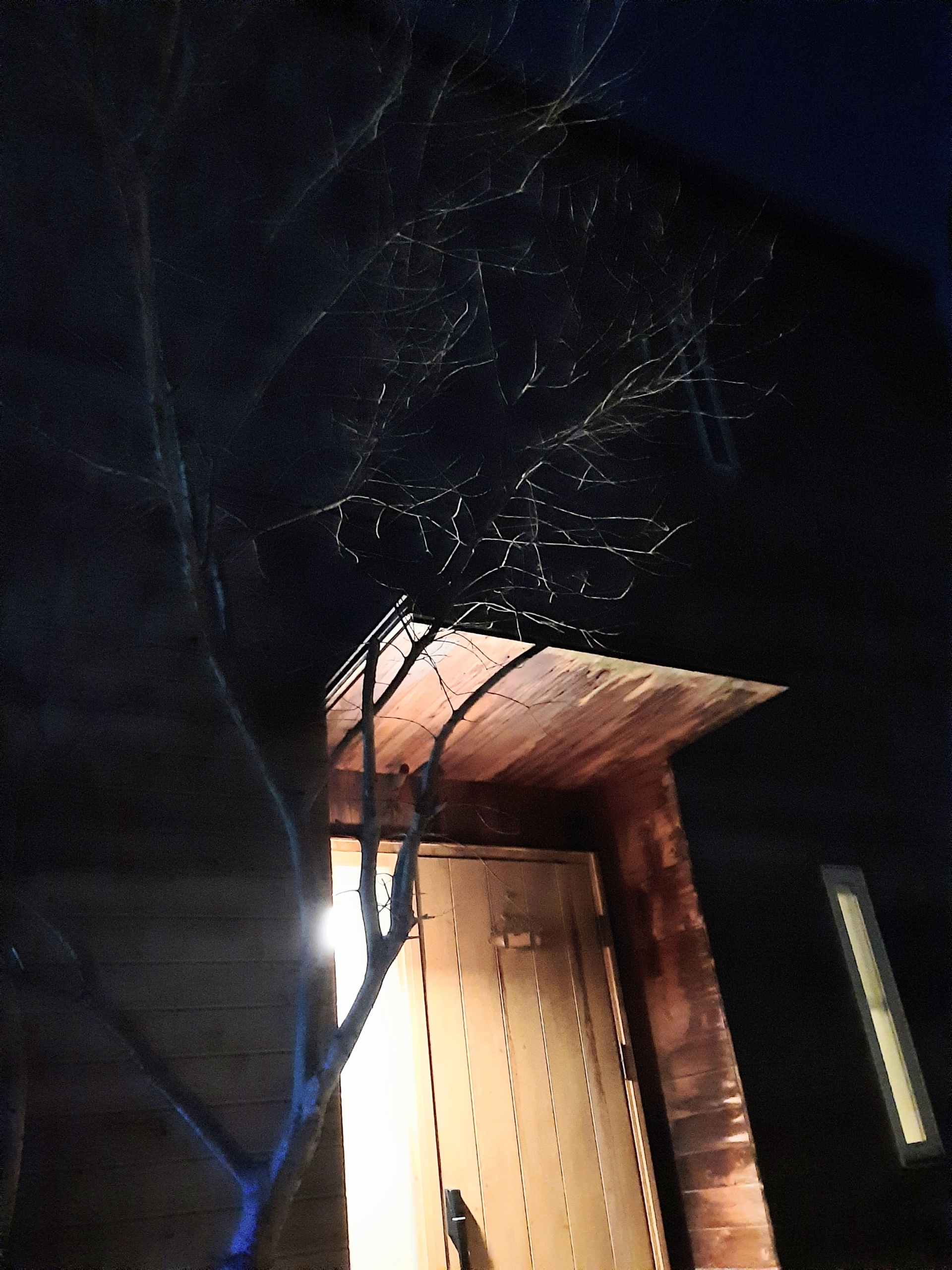 家に入る時にいつも見ている風景なのですが、夜の我が家です。