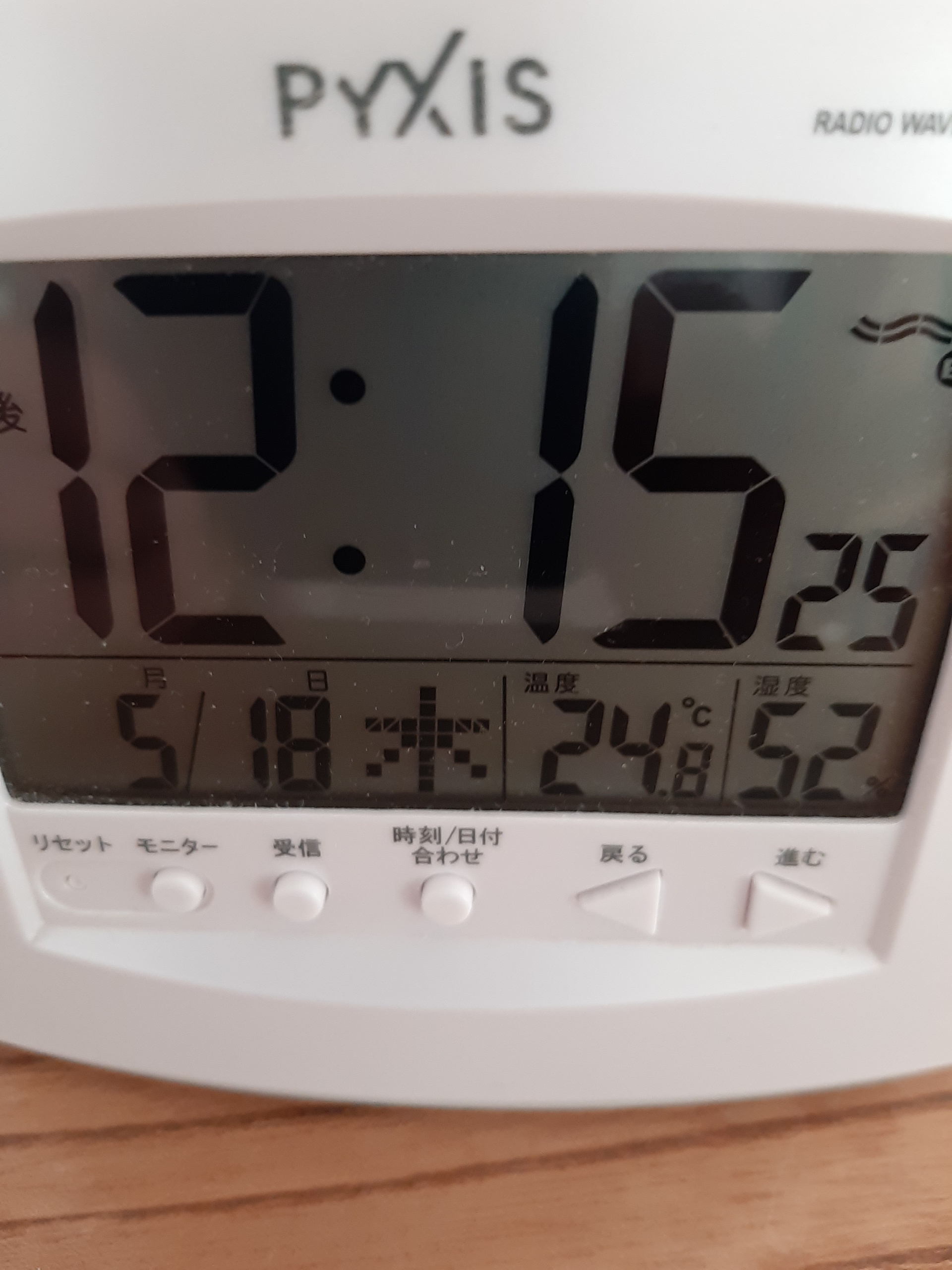 約25℃で、今までに比べると少しだけ上がっていますが、まだエアコン無しで過ごせています。