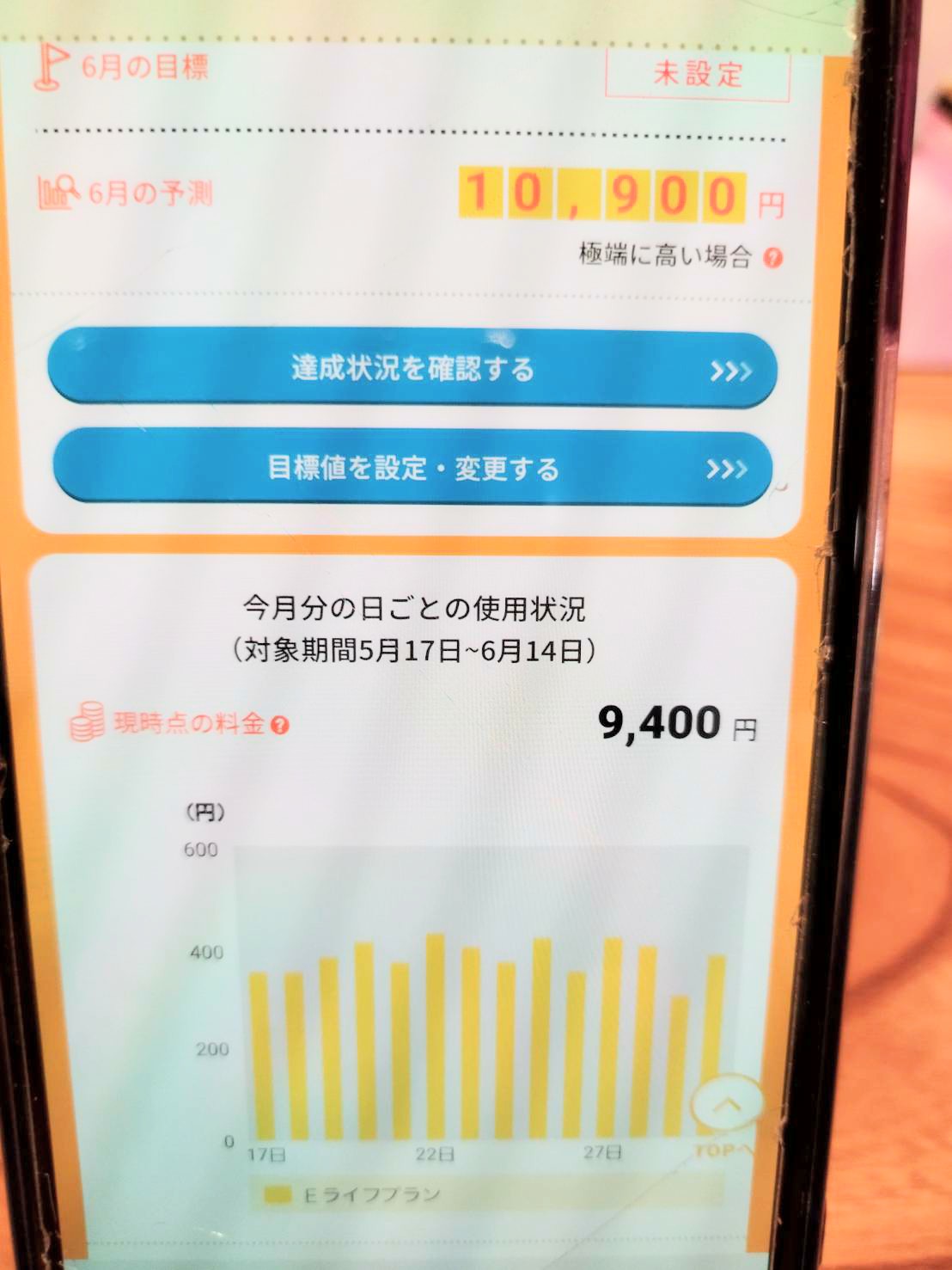 まだまだ例年に比べると高いですが、電気代が高騰した冬に比べるともだいぶ落ち着いたように思います。