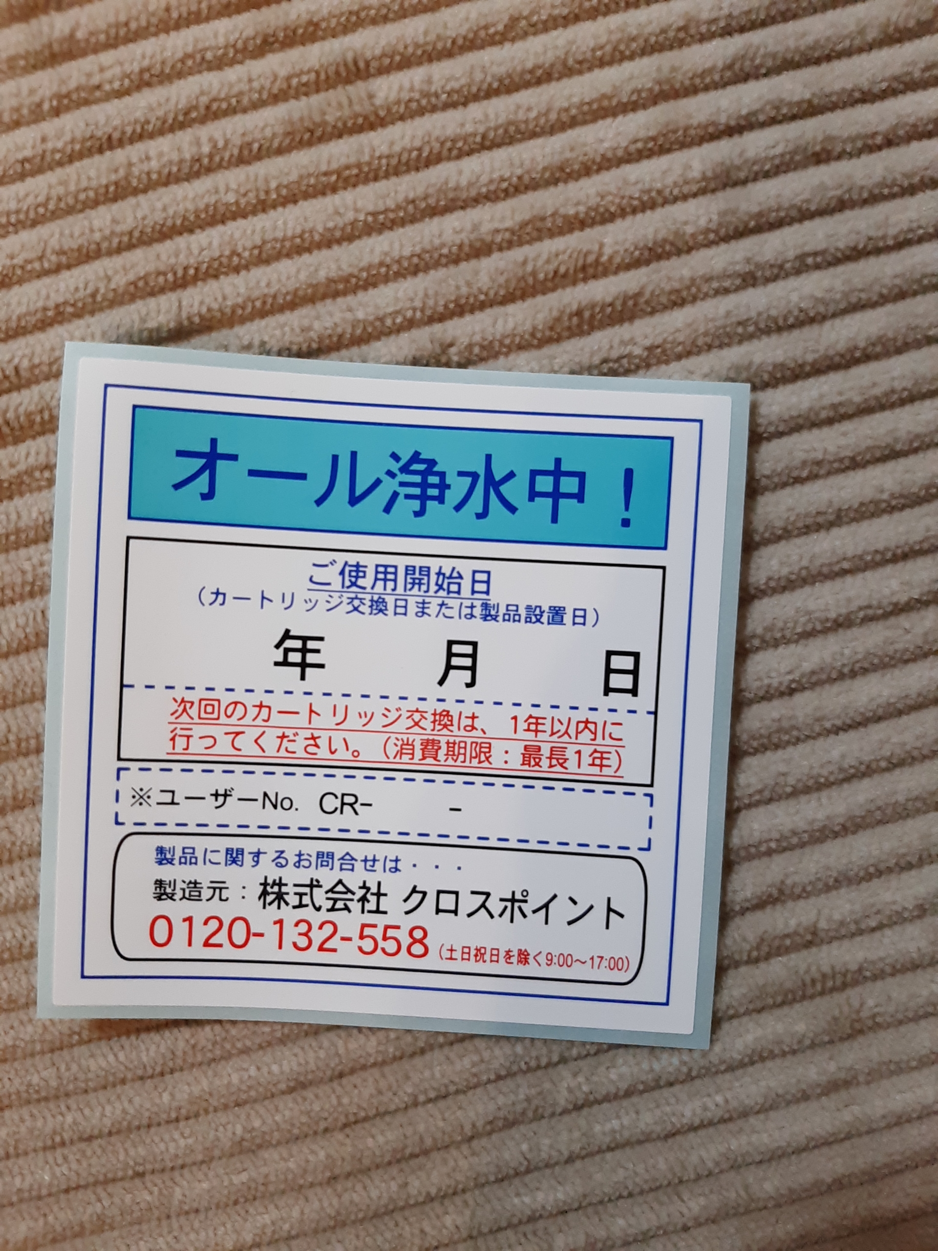 交換時期のシールをいただいたので、目に見える所に貼っておいて次は1年後にきちんと交換したいと思います。