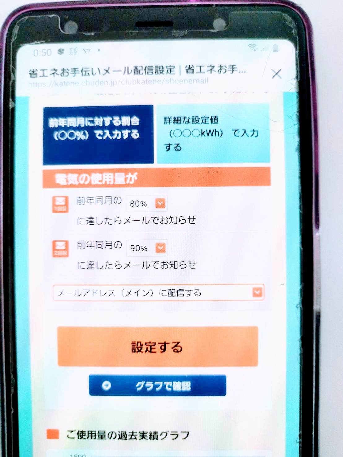 もう少し安くおさえたいとこですが、エアコンを使用する時期はある程度は仕方ないですが、少しでも節電できるようにと、カテエネの省エネお手伝いメールを設定してみました。