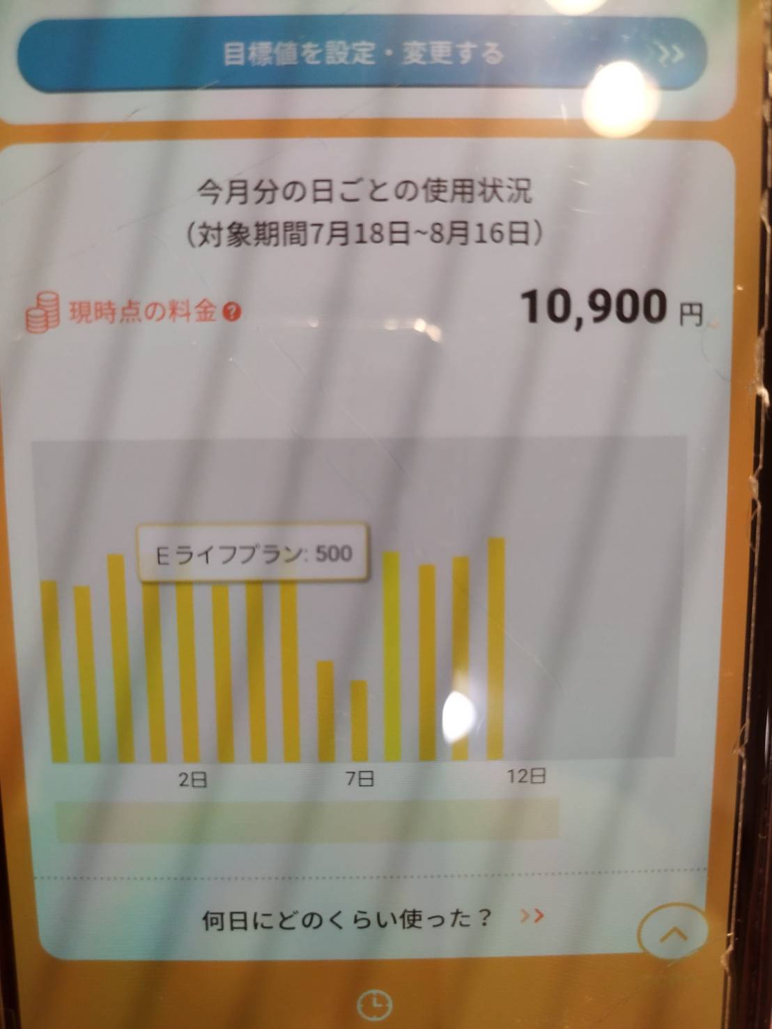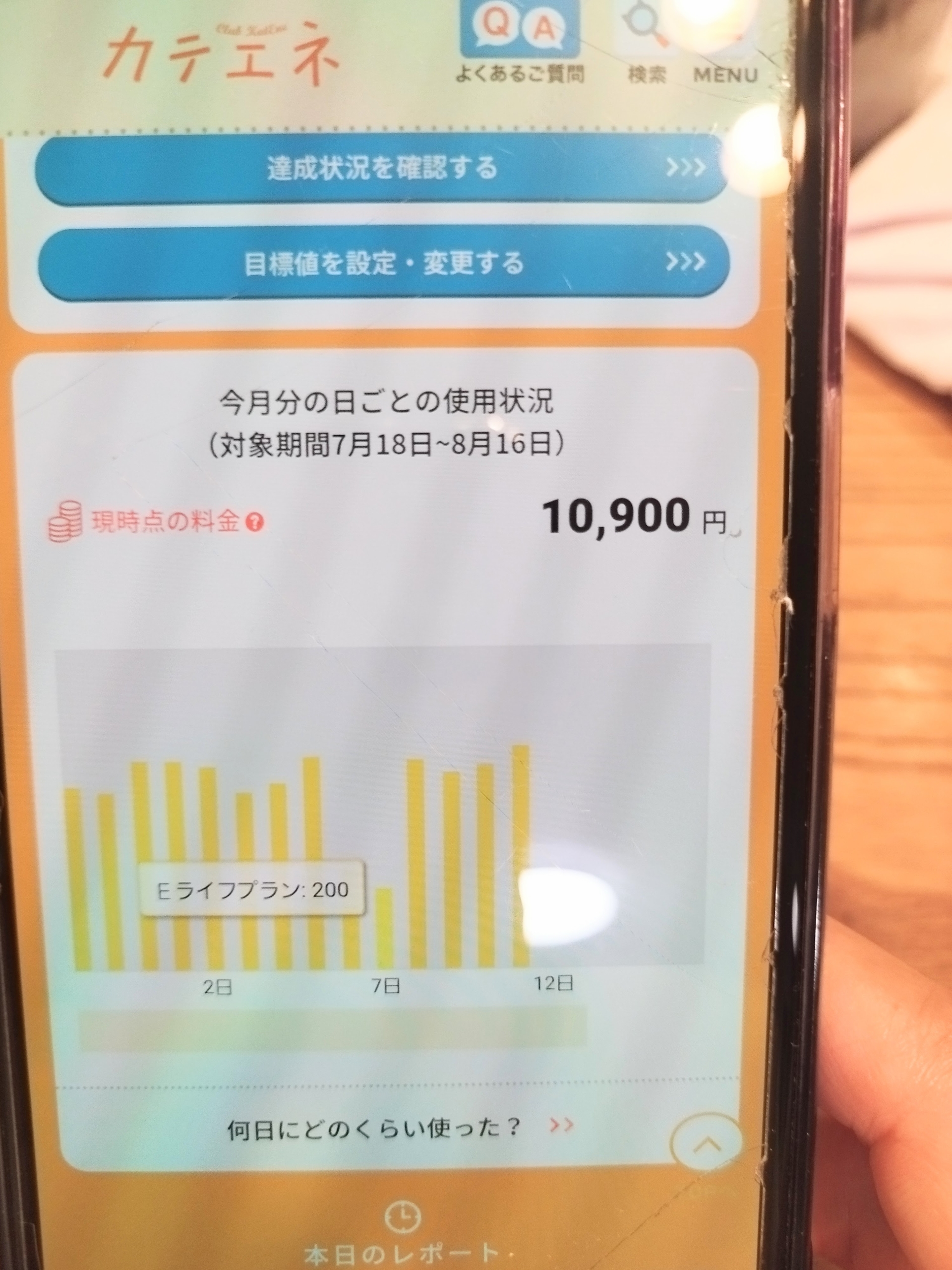 6日と7日は家族で外出していて自宅で過ごす時間がかなり少なく、エアコンも2~3時間の使用のみでした。
