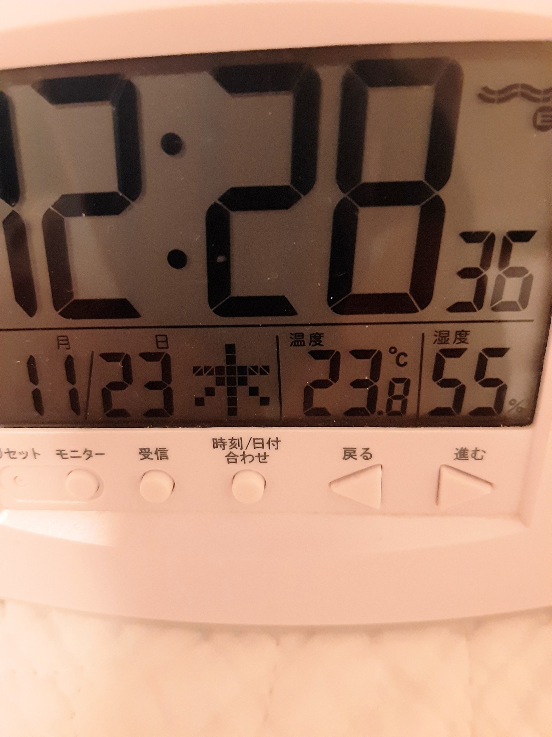 昼間は暖かかったものの、夜になると外は少し寒く感じましたが、部屋の温度は23、8℃。