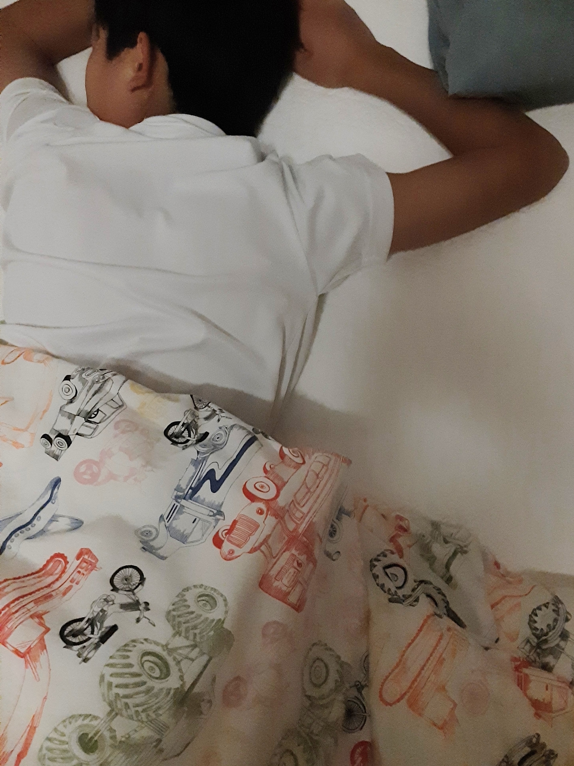 こちら長男くんですが、足の方を撮り忘れてしまいましたが、足は布団から出しています。