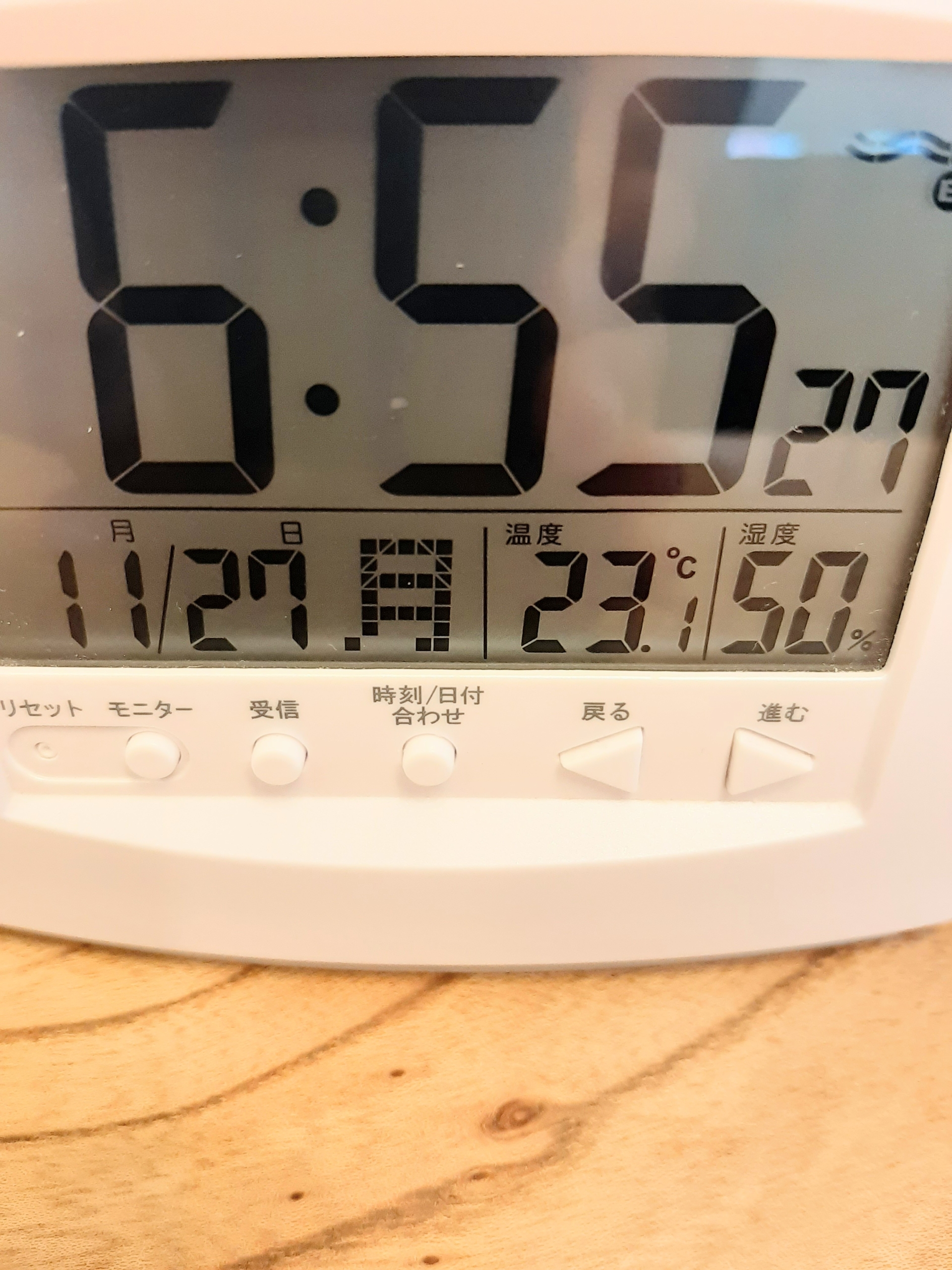 日差しがまだ部屋に入ってこない、朝7時少し前のリビングの温度です。
