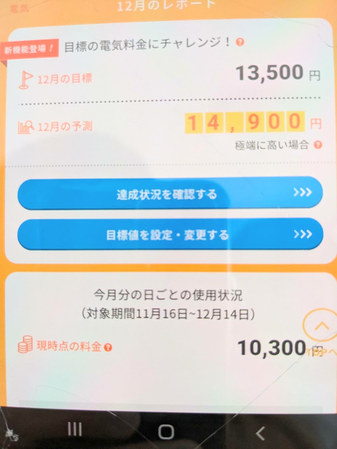 今月の電気代の予想ですが、約1万5千円くらいになりそうです。