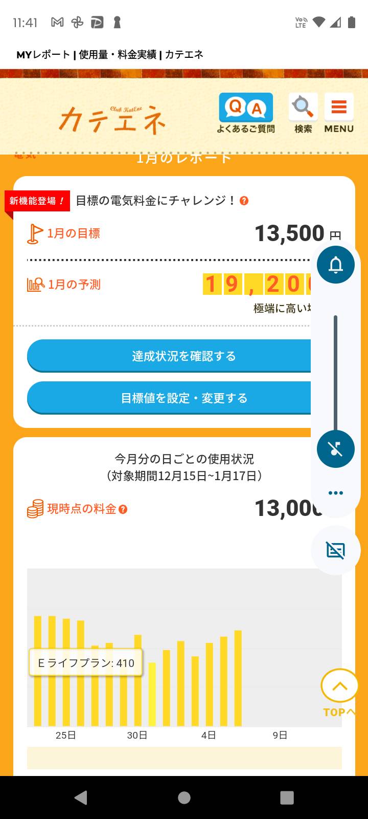 昨日の夜くらいから急に寒くなったので、電気代が気になり、今月の電気代の予想をみてみました。