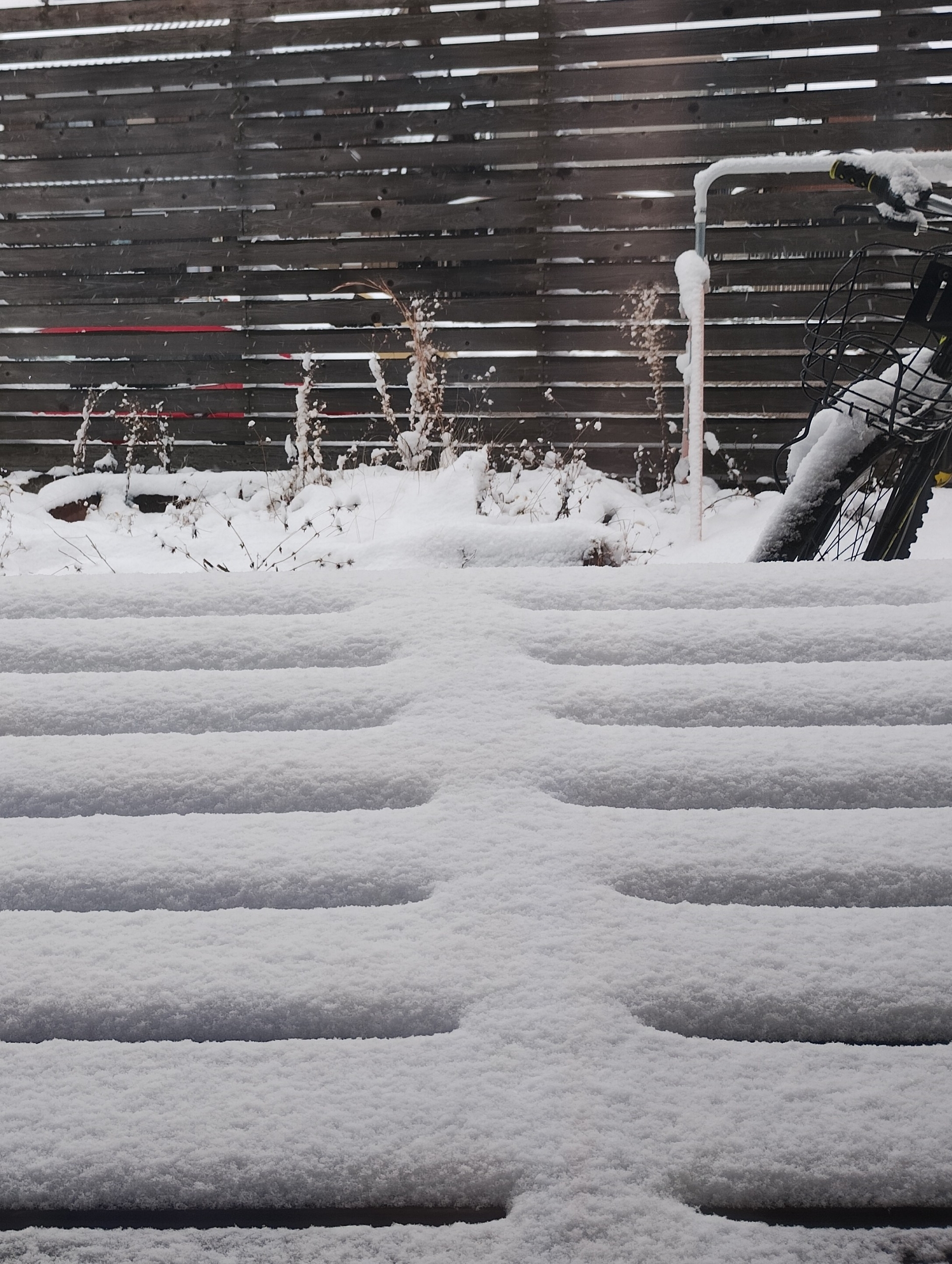 途中で少しやむ時間帯もありましたが、午後を過ぎてもずっと降り続いて我が家の庭にもたくさんの雪が積もりました。