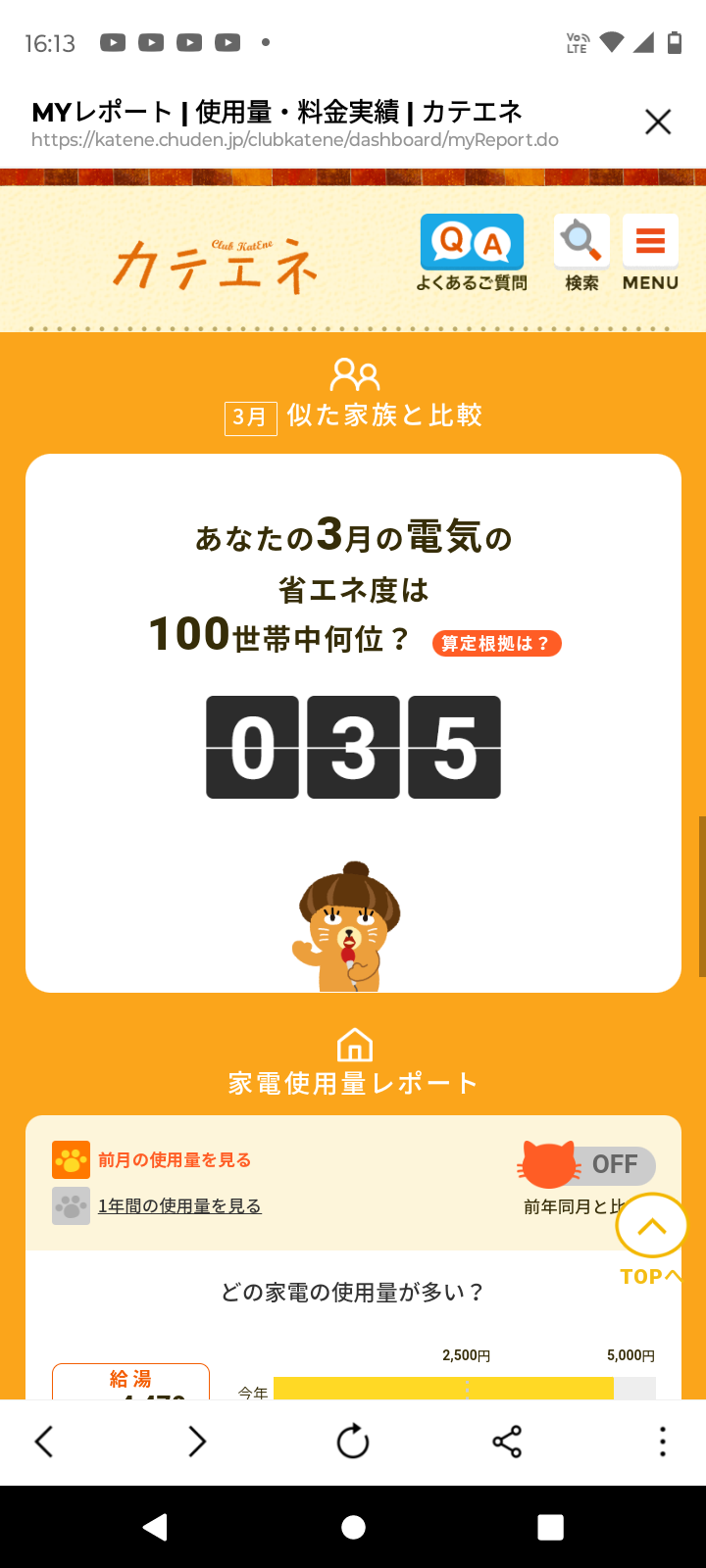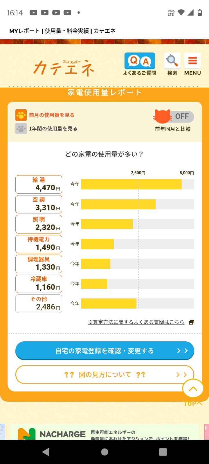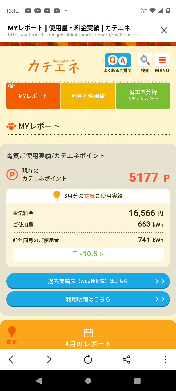 先月より多少増えましたが、乾太くんの使用、花粉軽減の為の空気清浄機使用などがあった為、想定内ではありました。