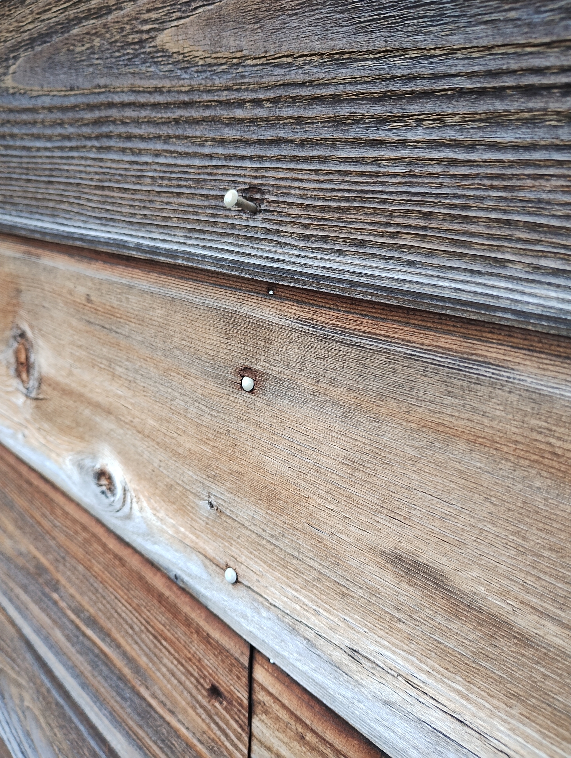 我が家の木の外壁ですが、止めてある釘が所々浮いて出きてしまいます。