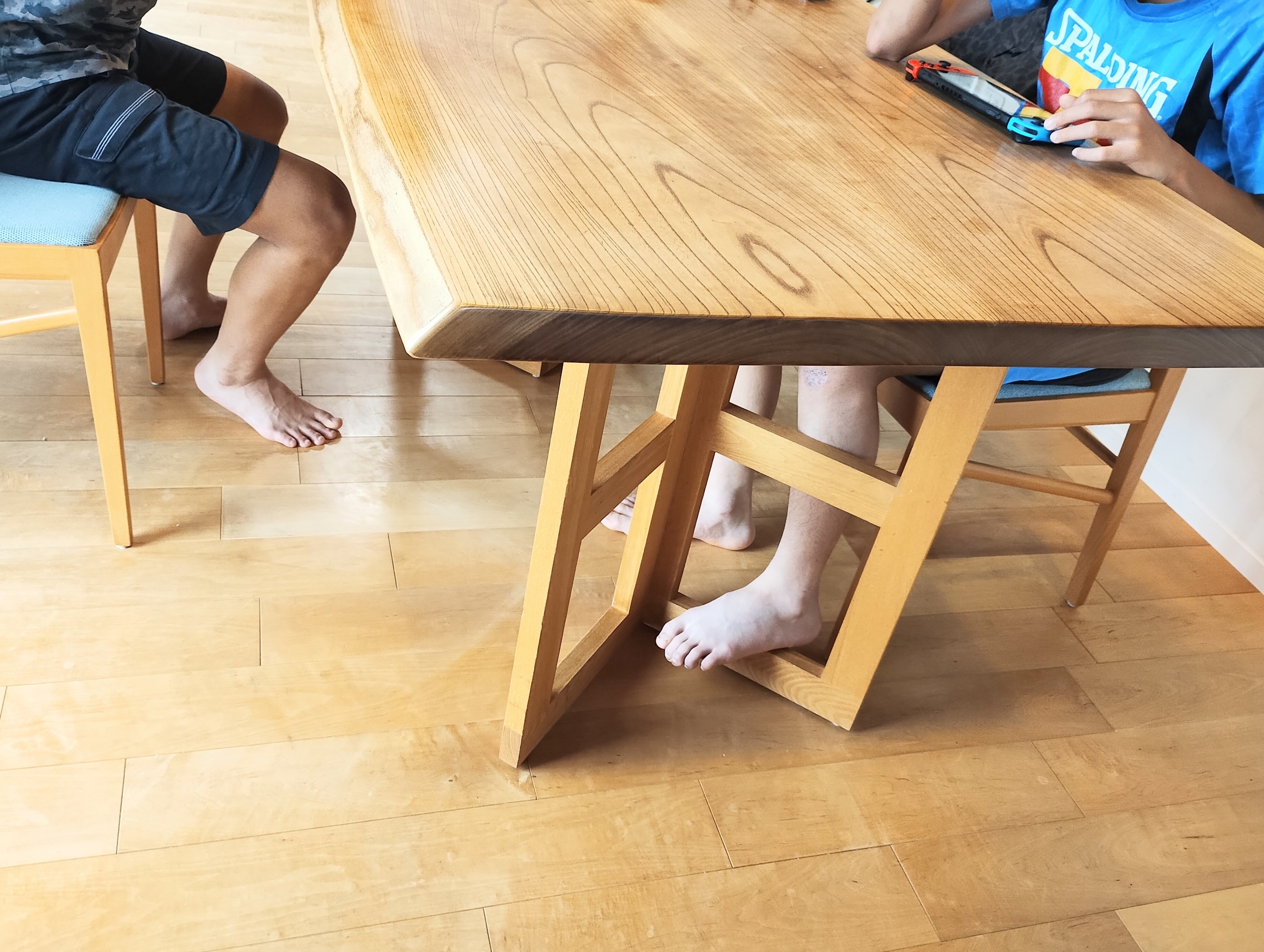 子供たちが成長とともにダイニングテーブルで過ごすことが多くなってきたのですが、子供たちも居心地がいいようで満足そうです。