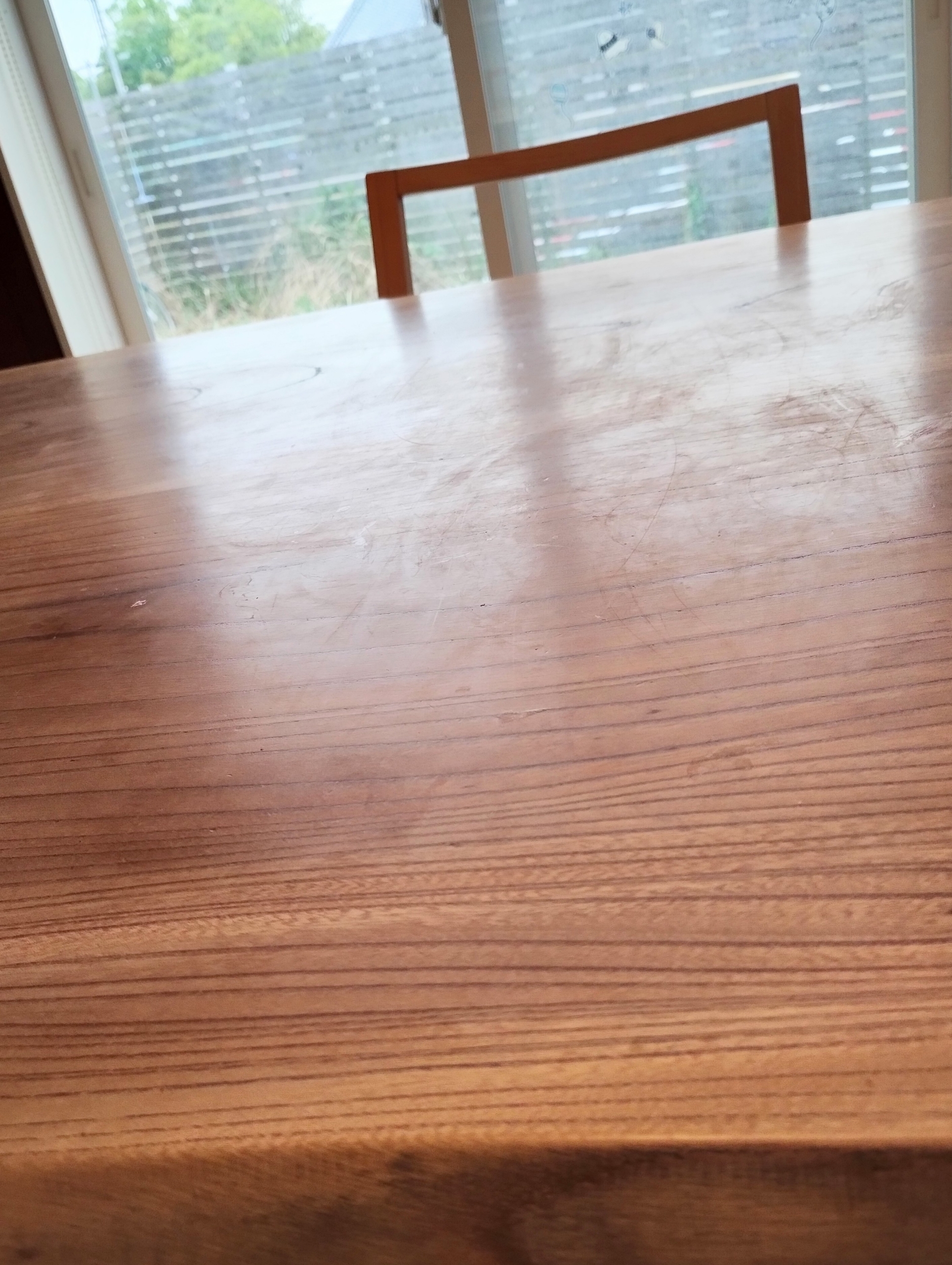 天然板のテーブルをエムズさんに紹介していただいたところで造っていただいて、10年以上使用していますが、壊れることもなく、あじがでてきて更にいい感じになってきました。