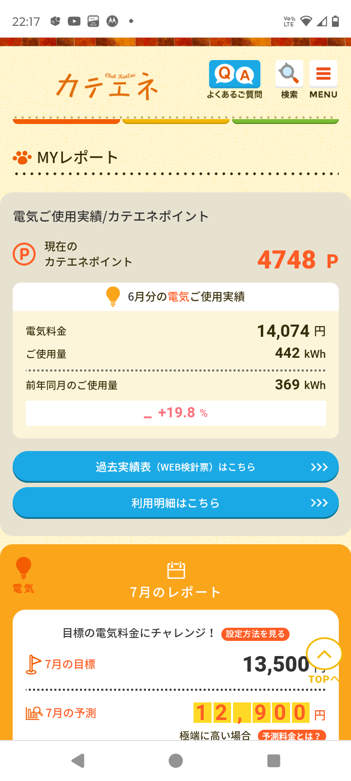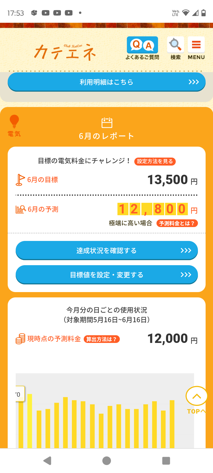 6月15日に出ていた予想電気代ですが、高くても12、800円だったので、16日までの1日だけで約1200円も使ってないはず、、、?