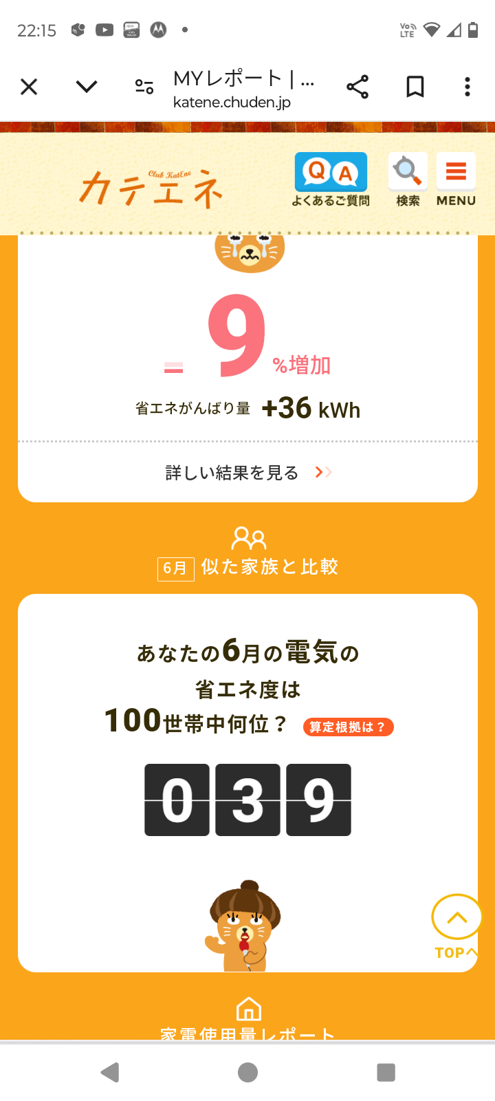 節電を頑張っても、安く抑えるのはなかなか難しいですが、100世帯中の39位なので、もっともっと節電を工夫しながら頑張っているご家庭もある訳で、尊敬な思いです。