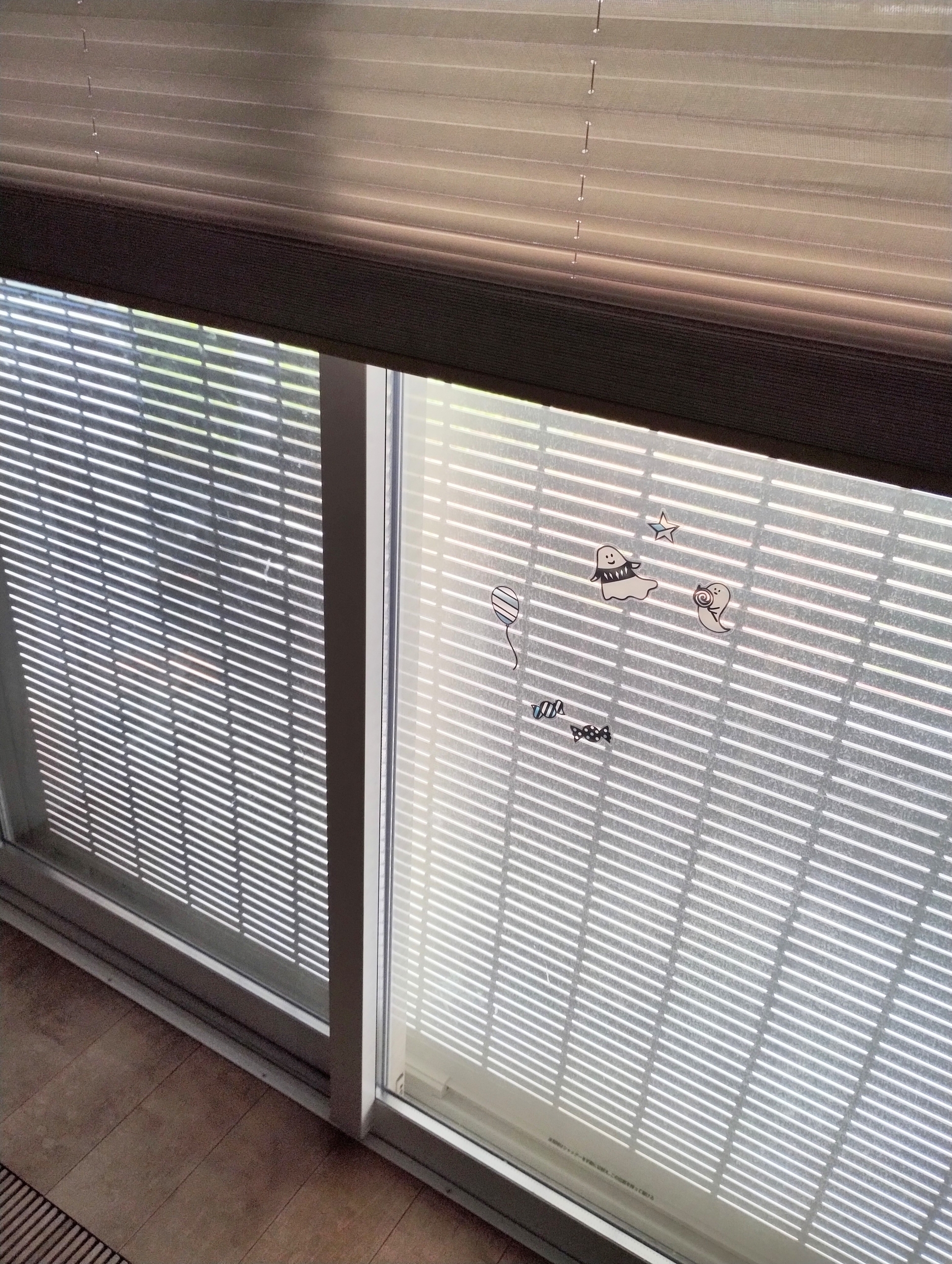 シャッターをスリットにして、窓の半分くらい遮熱ブラインドにしています。