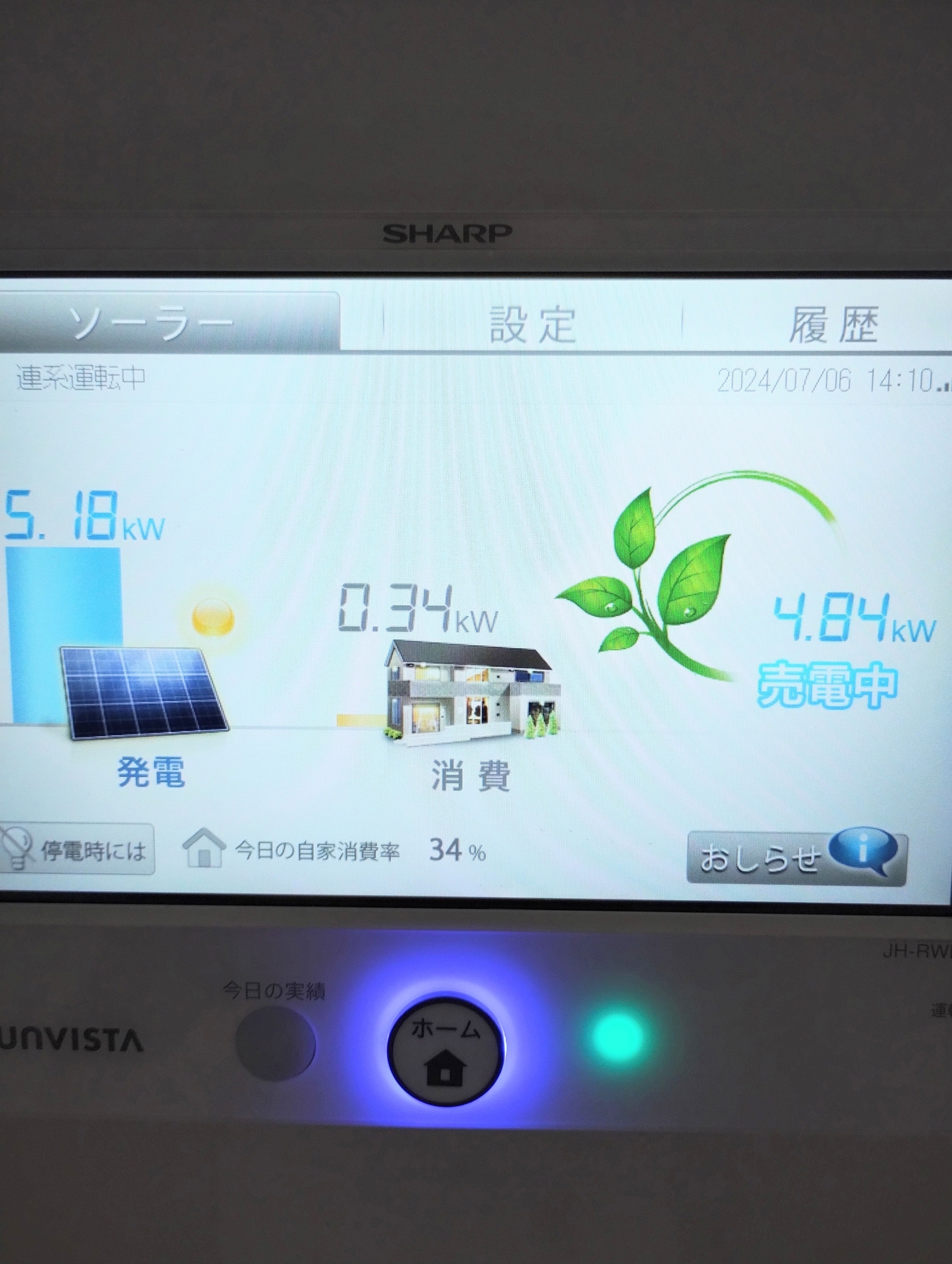 太陽光を設置して2日経ちましたが、昼間は電気代を気にせず使うことができています。